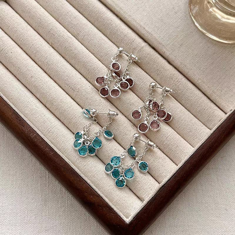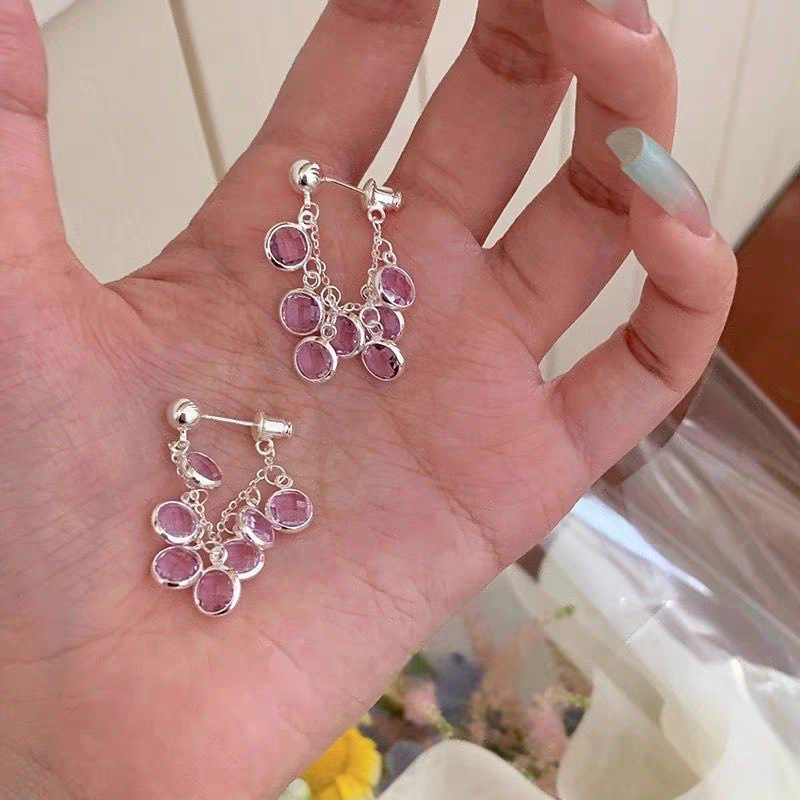春夏爆闪葡萄流苏后挂式气质耳环小日薄荷小清新耳饰耳钉