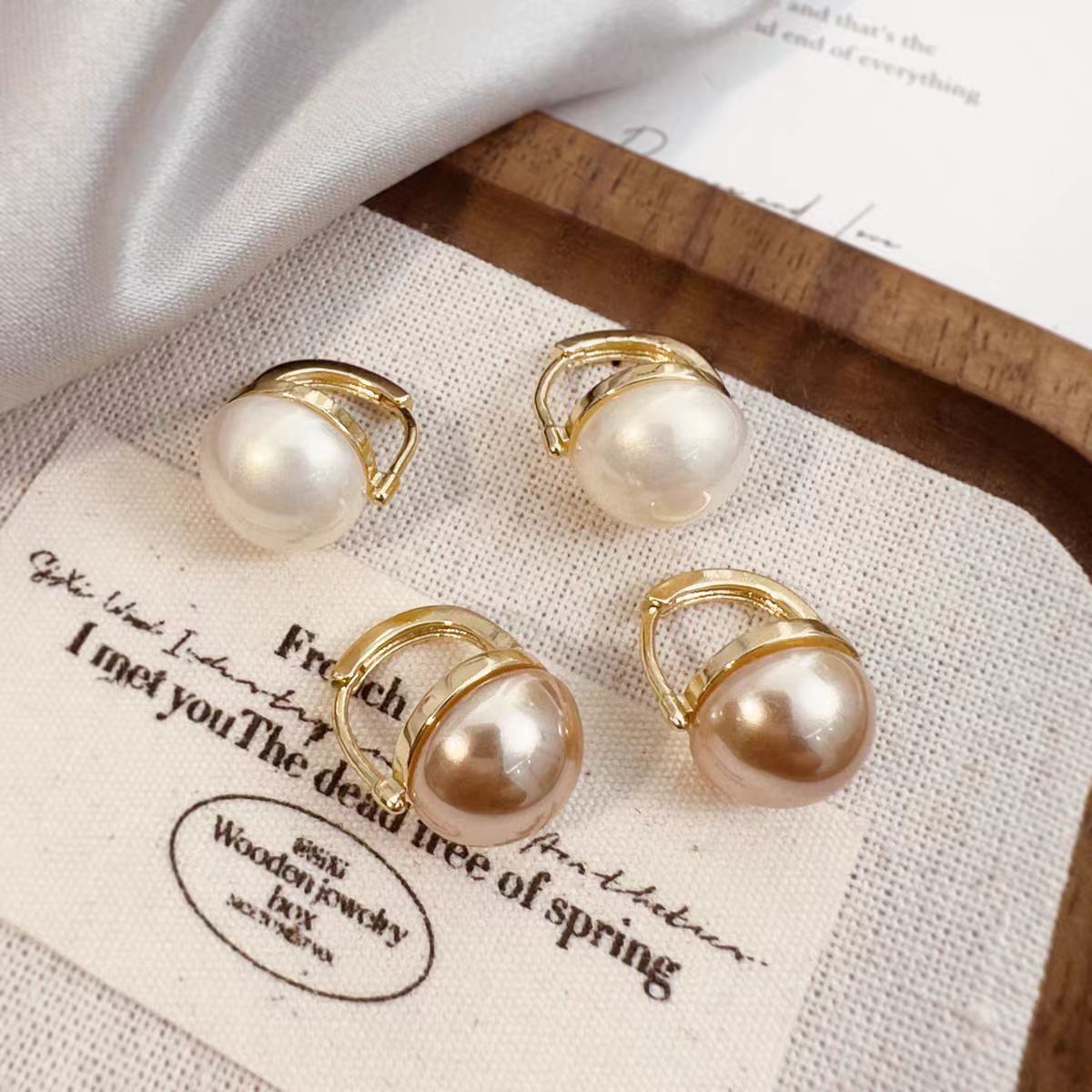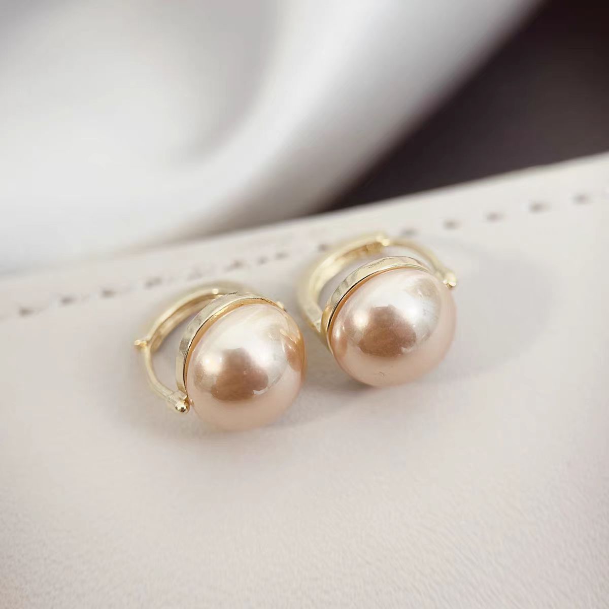 气质高级感香槟色半圆珍珠耳扣轻奢百搭耳钉2024新款耳环时尚耳饰 English | 投诉