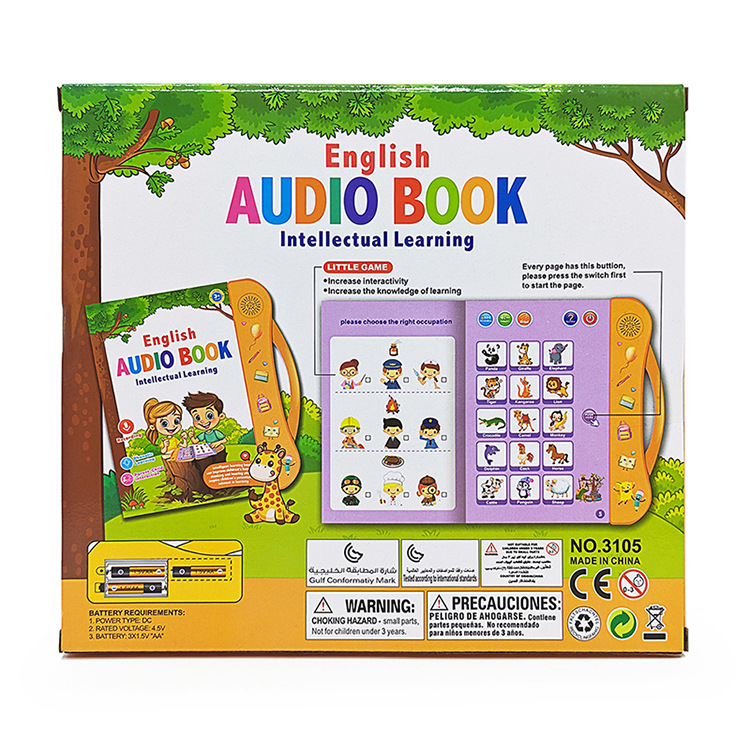 功能: 录音,音乐/发声,触摸反映 材质: 纸制 供电方式: 普通干电池 包装方式: 彩盒 能力培养: 情感,视觉,智力开发,动手动脑,抓握,感 内存容量: 无内存 类别: 点读笔/点读机 规格: 25.5X23X2CM 货号: 3105 是否有动漫形象: 否 装箱信息:长宽高:76X28X58cm 装箱重量: 25KG 装箱数量:60pcs
