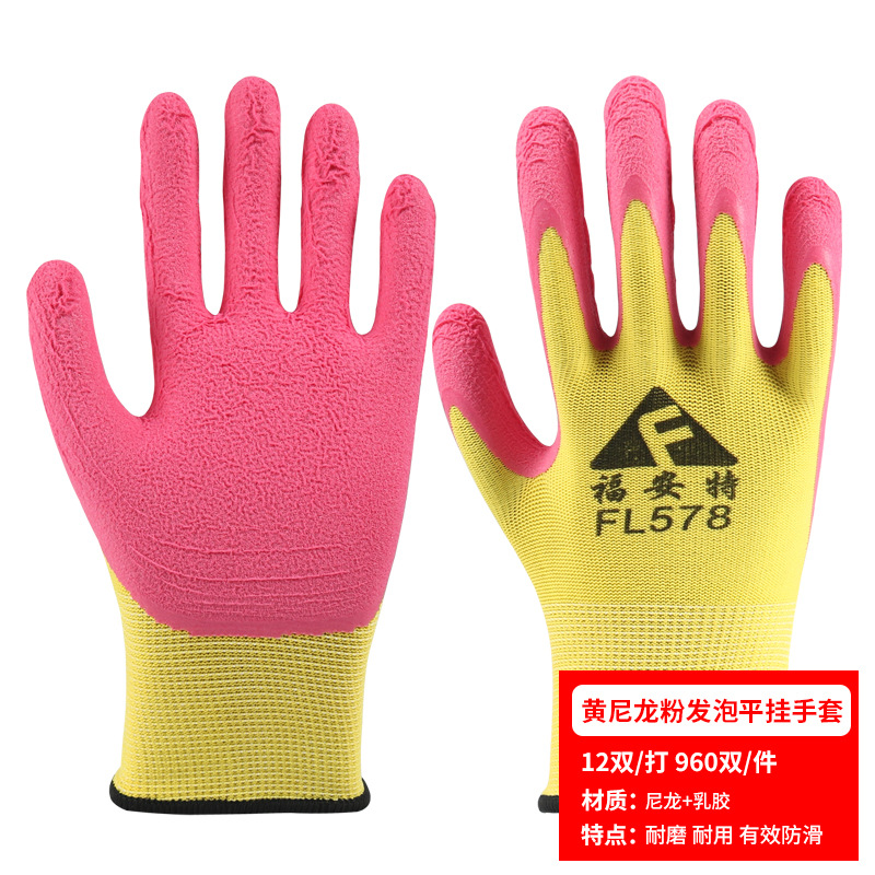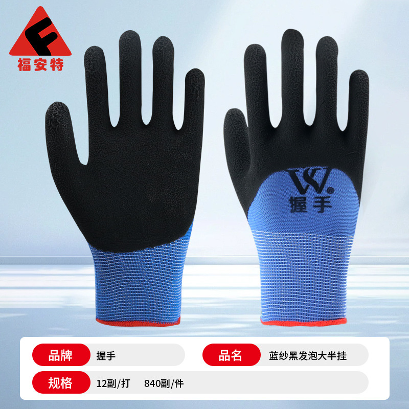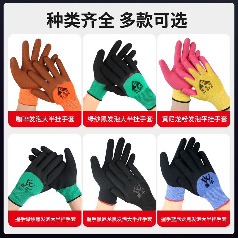 手套工地上用13针尼龙乳胶发泡防滑耐磨挂胶工作防护浸胶劳保手套