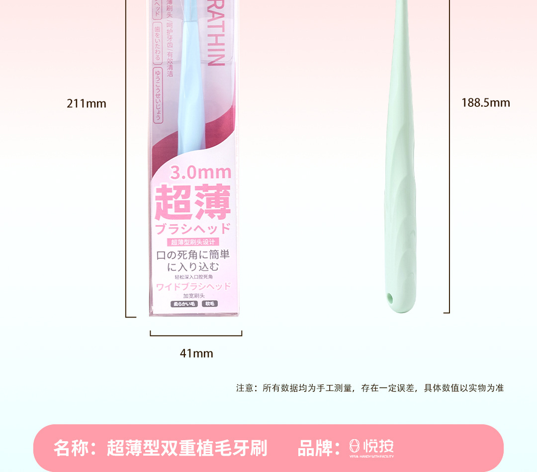 悦按成人软毛牙刷高级超薄加宽刷头螺旋丝单支独立装家用厂家批发