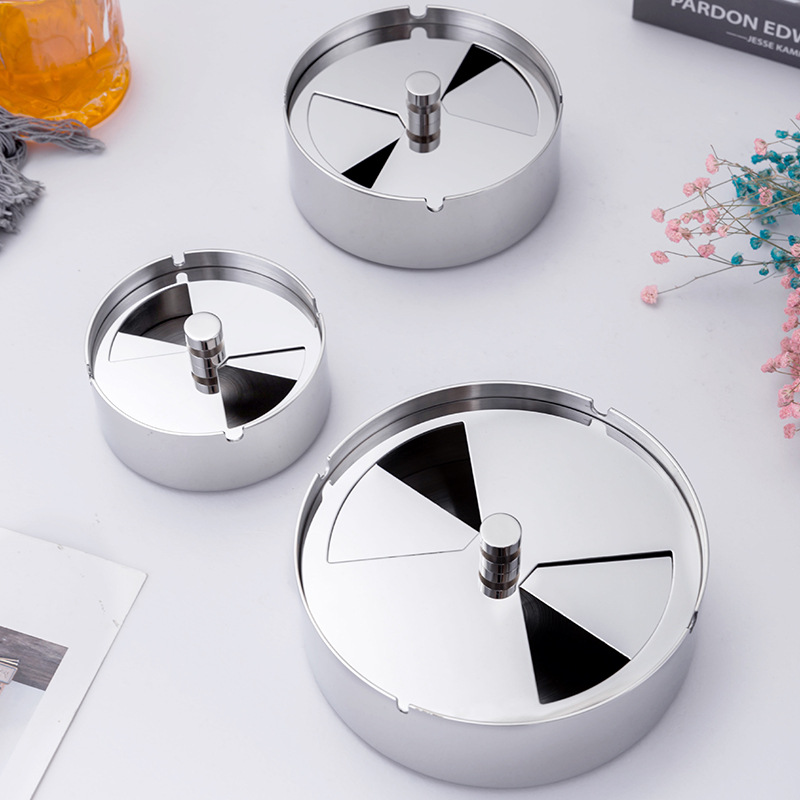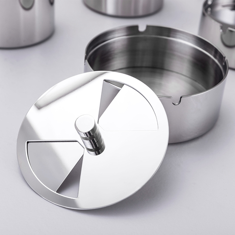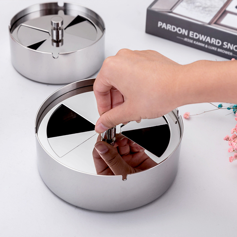 不锈钢烟灰缸带盖旋转防风烟缸家用台面烟灰盅车载礼品烟灰缸