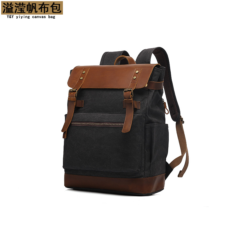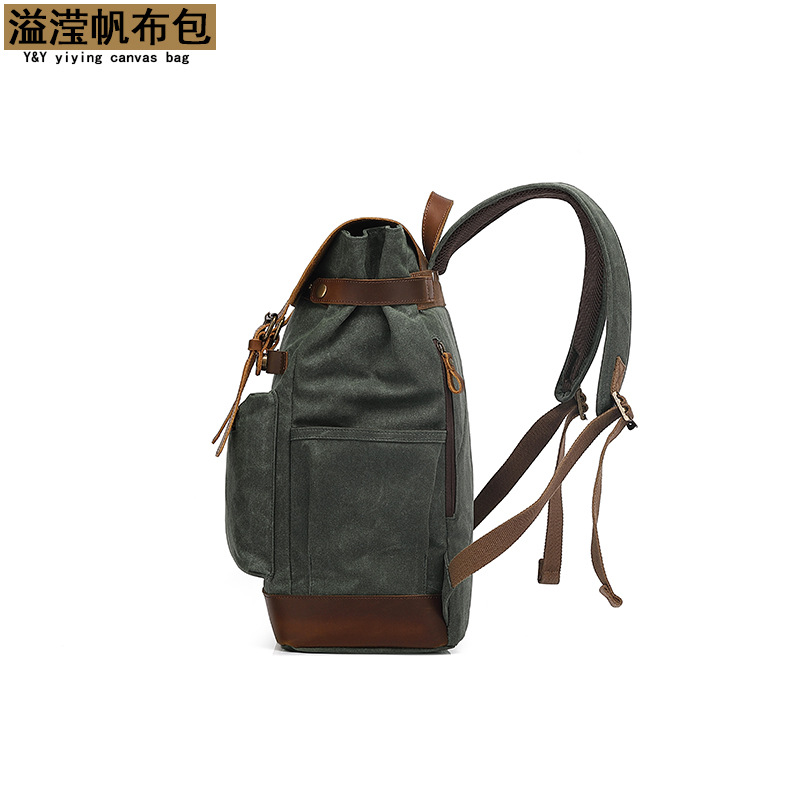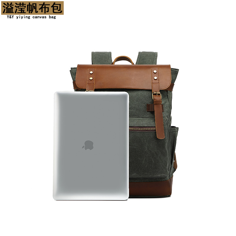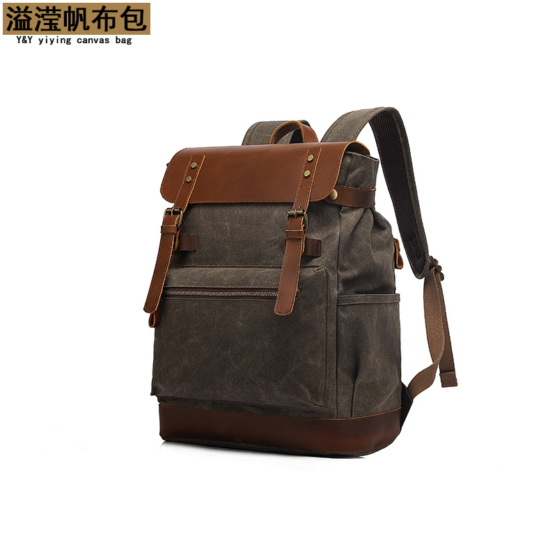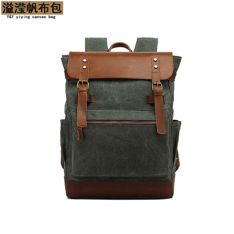 背包复古双肩旅行包户外学生书包运动过蜡防泼水帆布旅游袋配皮