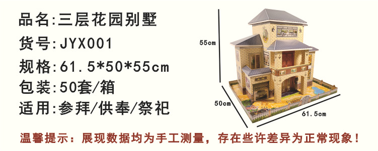 清明扫墓五七周年寒衣节纸扎三层别墅半成品纸房子祭祀用品大全 投诉