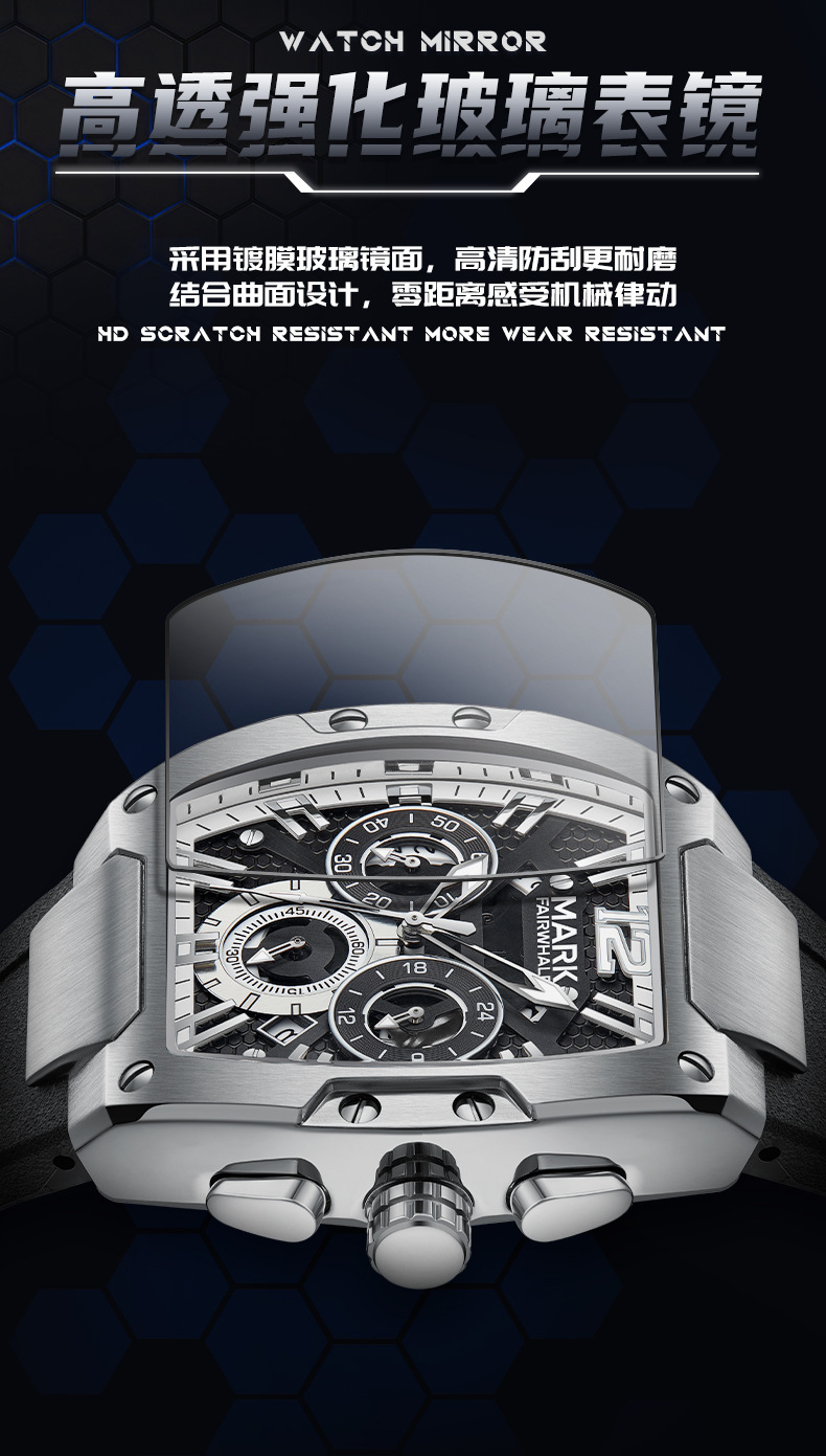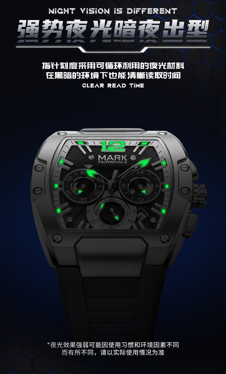 马克华菲Mark Fairwhale品牌手表男多功能六针防水夜光新款石英表