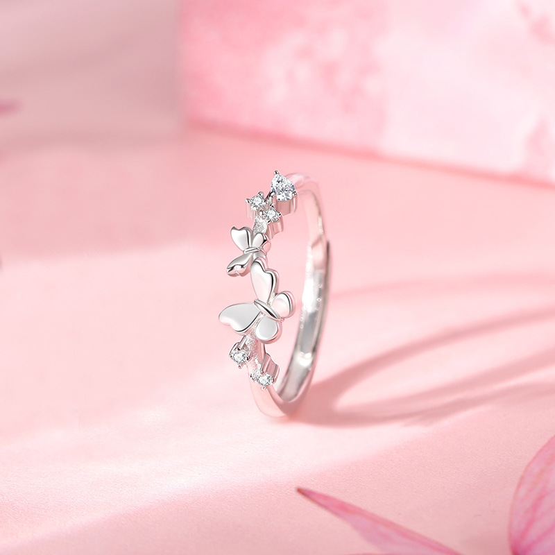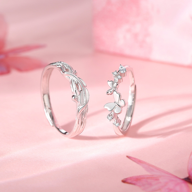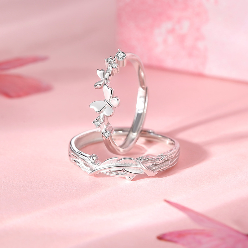 原创羽化蝴蝶情侣对戒小众设计感森系开口戒指纯银一对情人节礼物