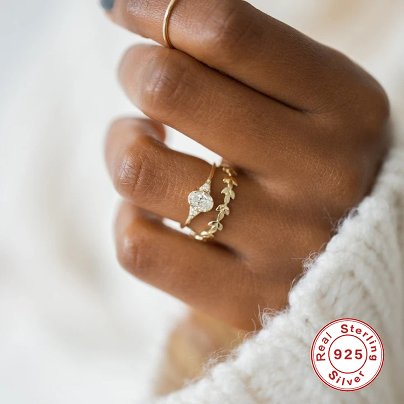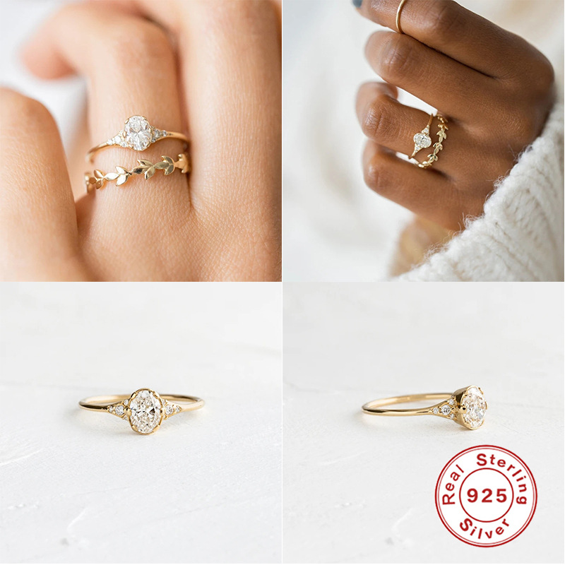 S925纯银迷你几何椭圆形钻石订婚戒指韩版气质个性轻奢镶钻食指戒