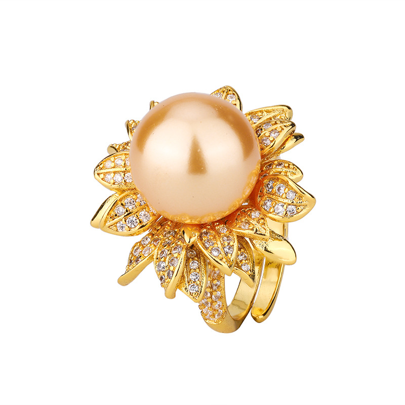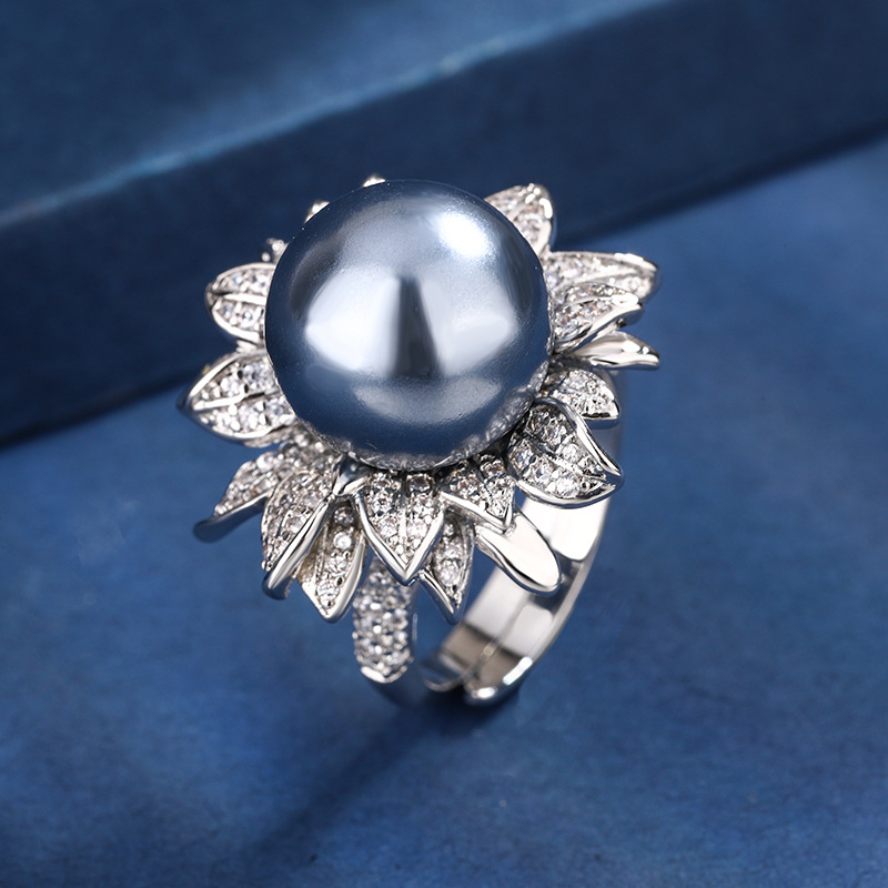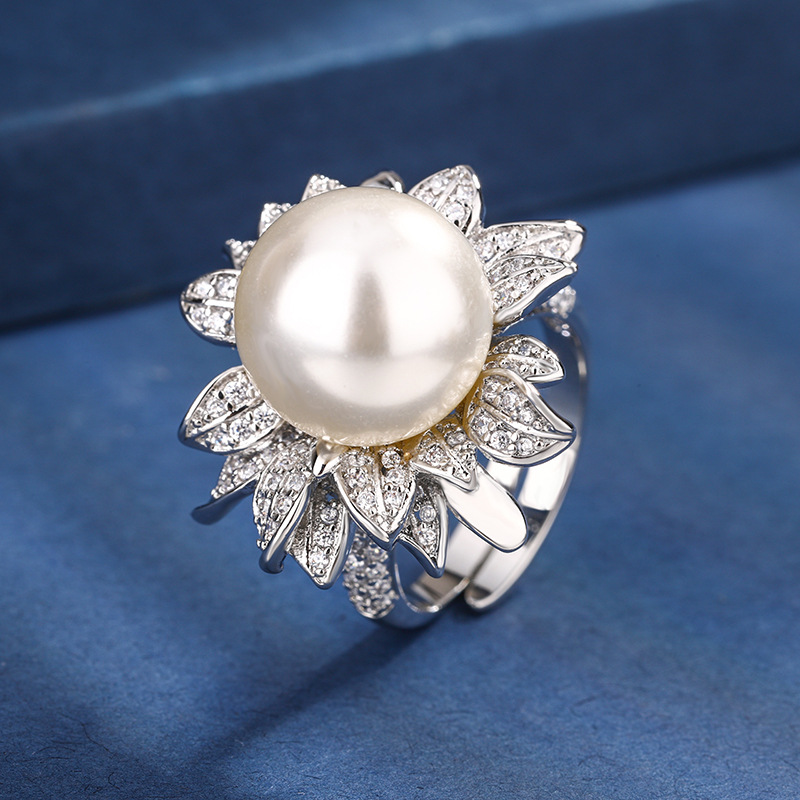 2024庄生生珠宝铜镀白金新款镶嵌仿真珍珠花卉镶钻女式戒指14mm 投诉