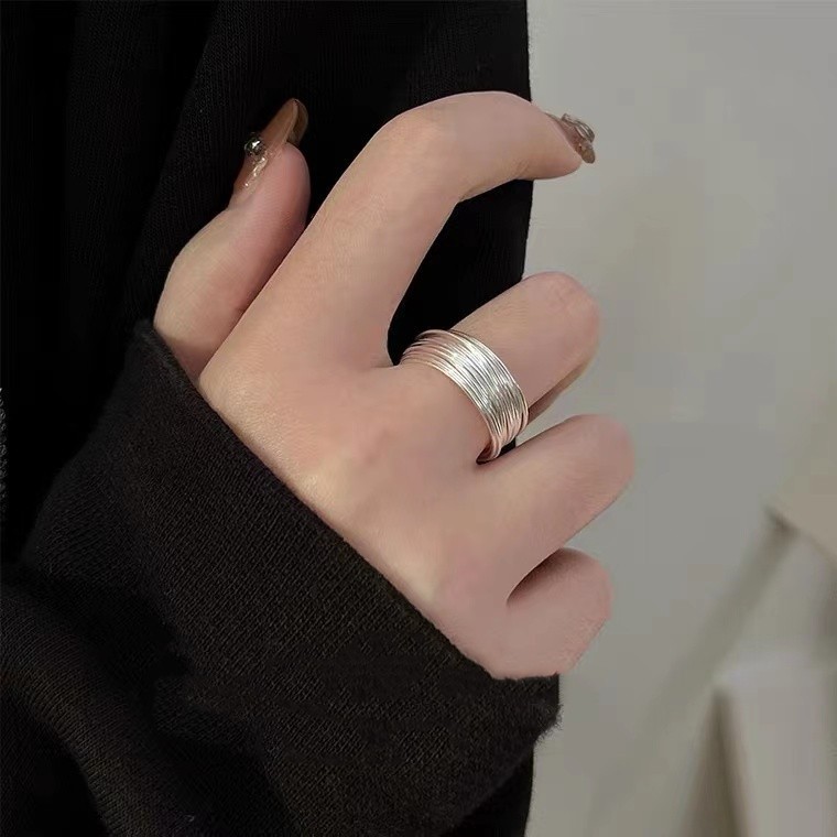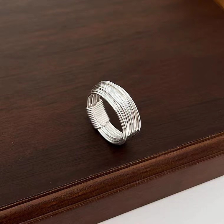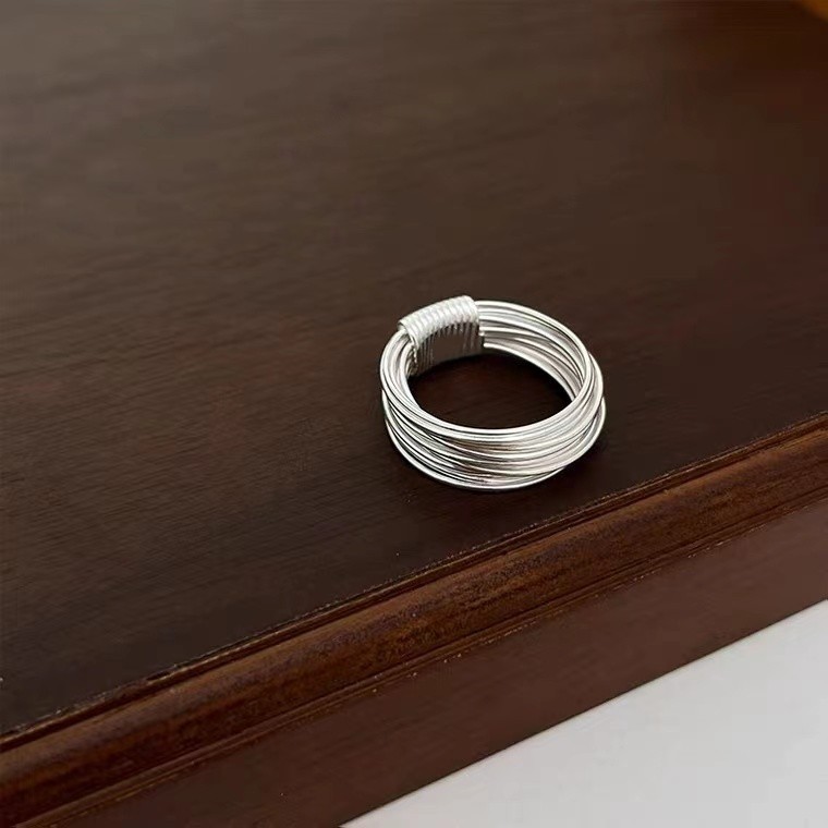 s925纯银新款缠绕细丝戒指简约精致小众设计高级感复古多层指环