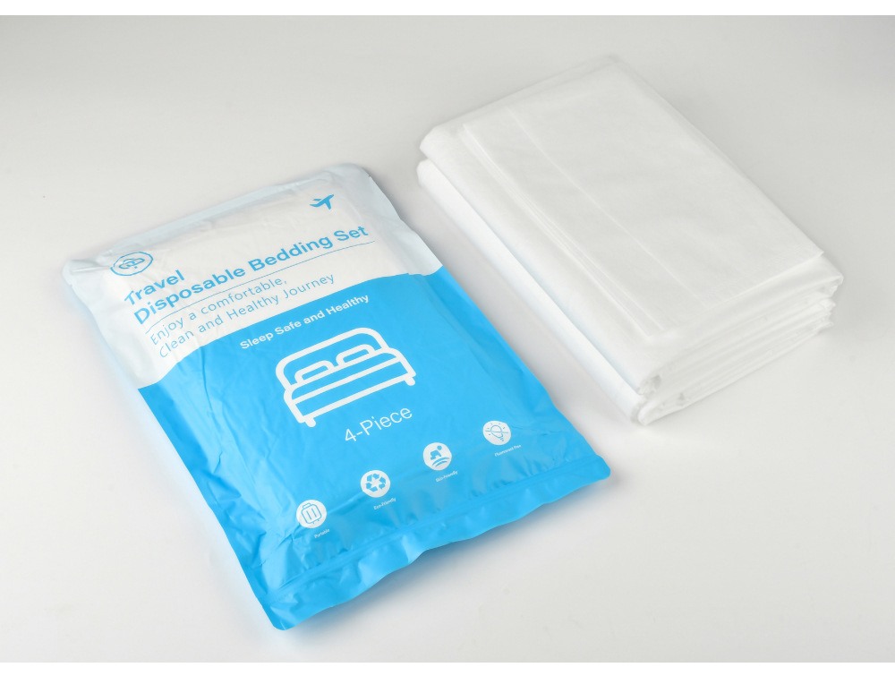 跨境英文真空免洗隔脏酒店旅行一次性床单被罩床笠枕套被套四件套