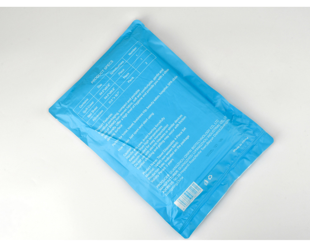 是否跨境出口专供货源: 是 主要下游平台: 其他 规格: 蓝色英文一次性四件套 是否专利货源: 否 专利类型: 无 材质: SMMS无纺布 品牌: 其他 重量: 0.147 kg/件
