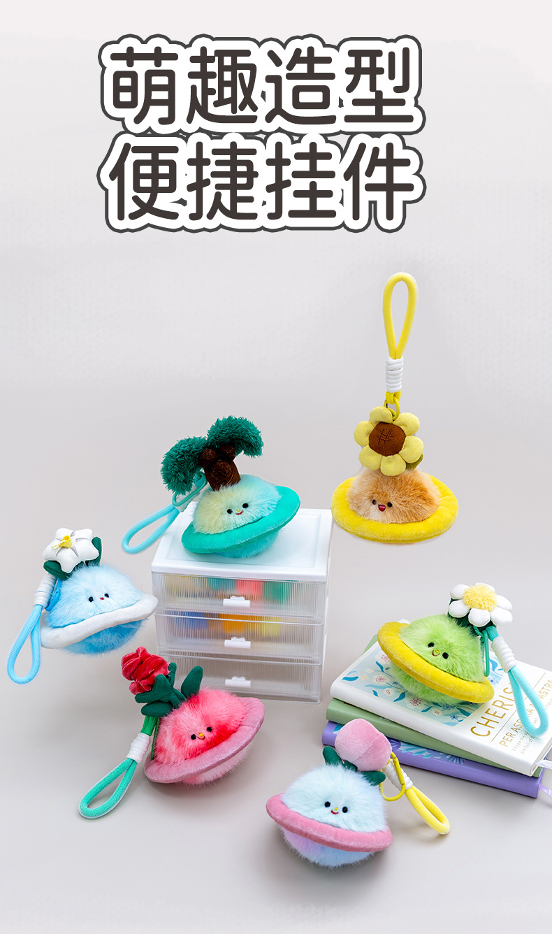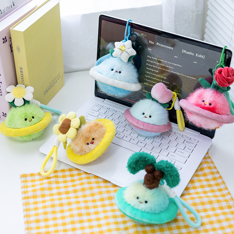 创意植物星球毛绒公仔小雏菊花钥匙扣潮玩包包挂件精品玩偶礼物