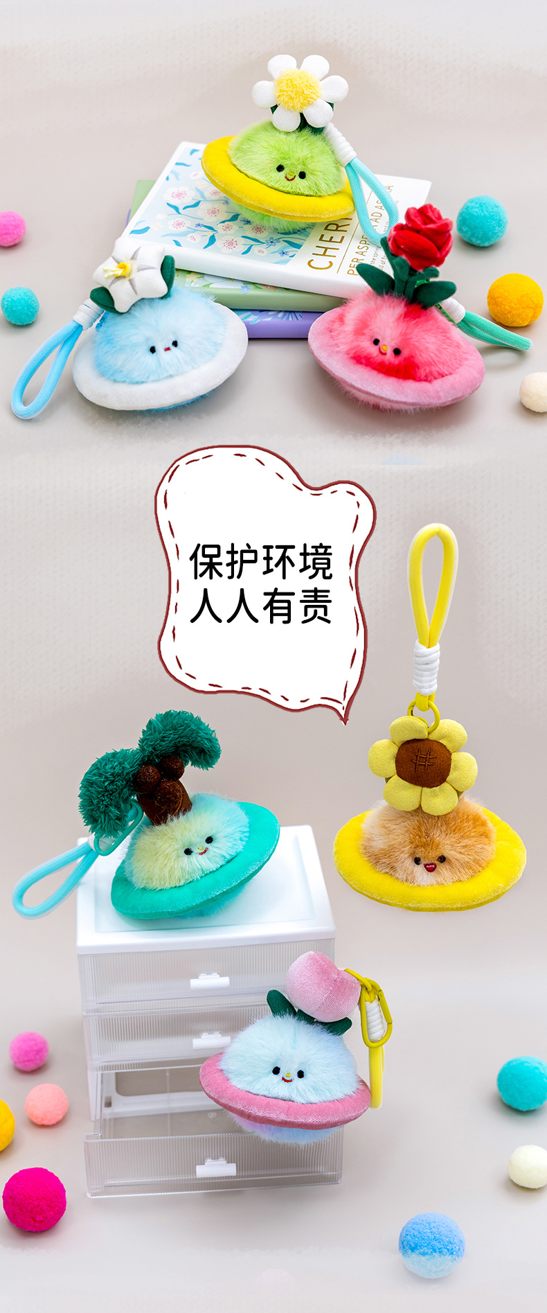 创意植物星球毛绒公仔小雏菊花钥匙扣潮玩包包挂件精品玩偶礼物 投诉