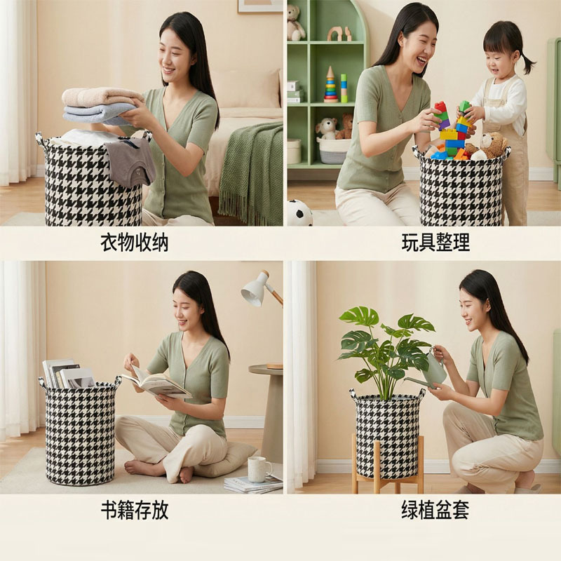 材质: 棉麻 品牌: 欣瑞 产品类别: 脏衣篮 适用范围: 被子,内衣,文具,换洗衣物 风格: 简约风 是否进口: 否 型号: 千鸟格脏衣篓 产地: 临沂 箱装数量: 150 产品上市时间: 2023年夏 专利: 否 价格段: 5元以内 贸易属性: 内贸+外贸 货号: 千鸟格脏衣篓 有可授权的自有品牌: 是 是否跨境出口专供货源: 是 1: Storage basket 2: Dirty clothes basket 3: Pouch 重量: 0.411 kg/件