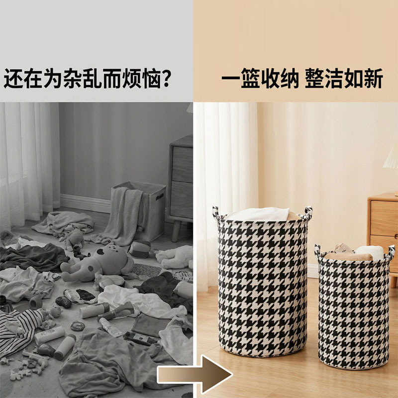 千鸟格可折叠衣物玩具整理神器收纳桶家居好物浴室脏衣收纳脏衣篓 投诉