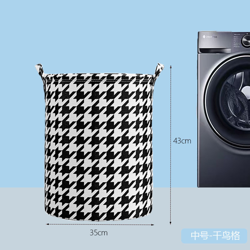 千鸟格可折叠衣物玩具整理神器收纳桶家居好物浴室脏衣收纳脏衣篓