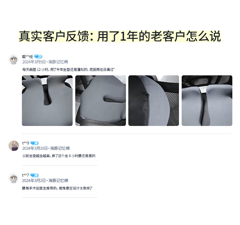 海豚记忆棉坐垫办公室上班久坐加厚护腰座垫臀部支撑屁垫通用代发 投诉