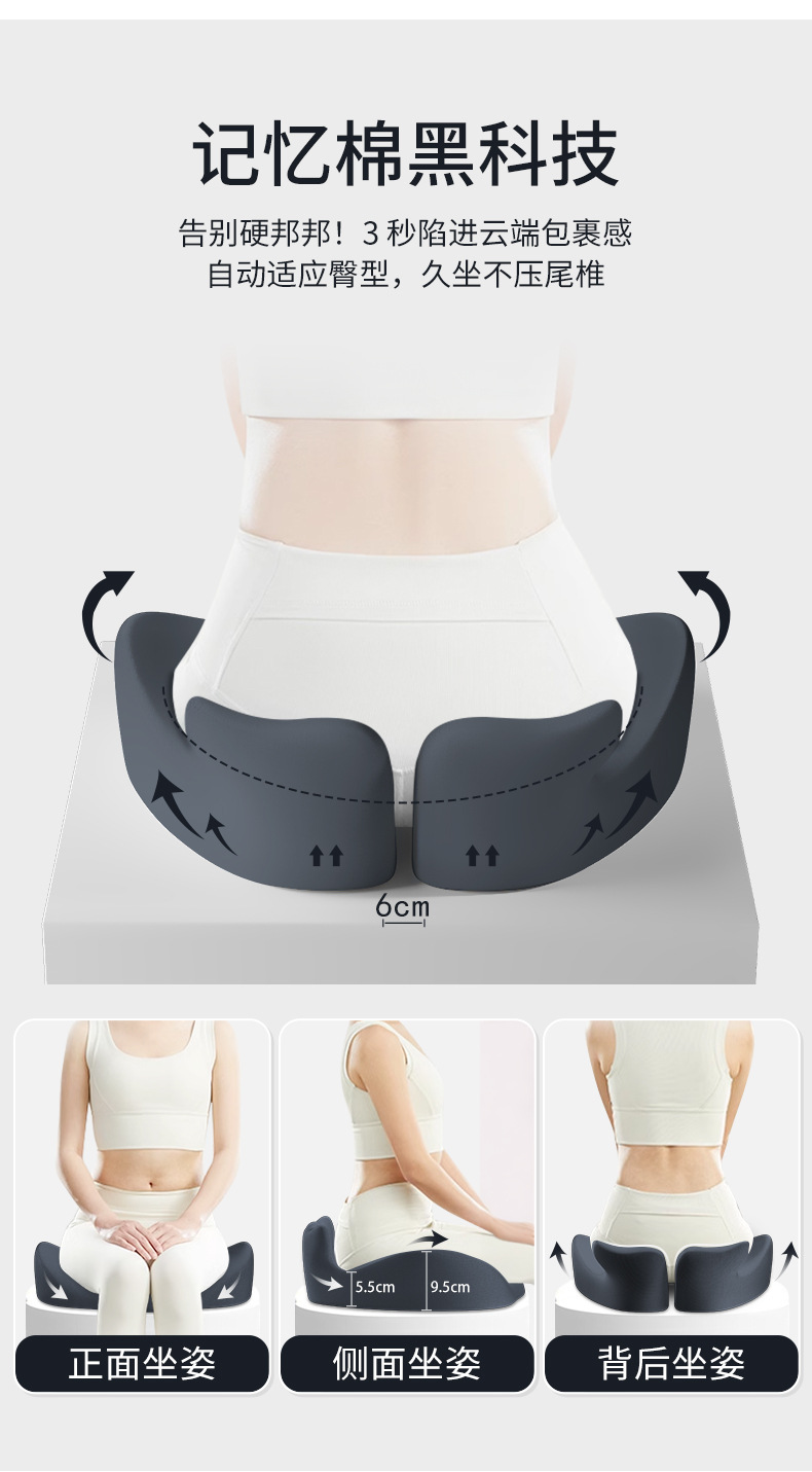 海豚记忆棉坐垫办公室上班久坐加厚护腰座垫臀部支撑屁垫通用代发