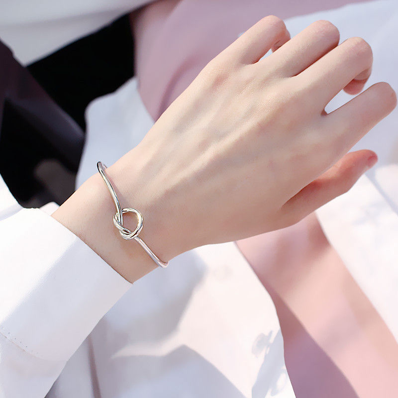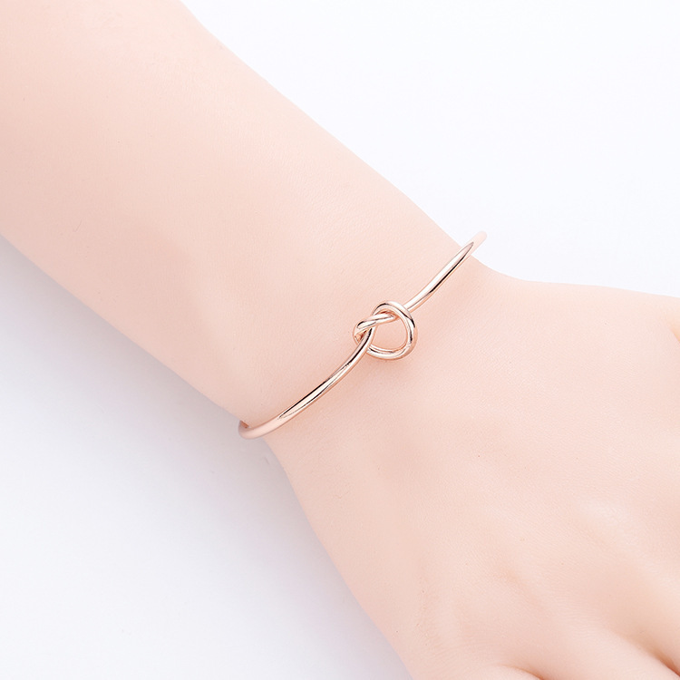 亚马逊爆款欧美热卖不锈钢女士手镯时尚简约心形打结开口手环臂环