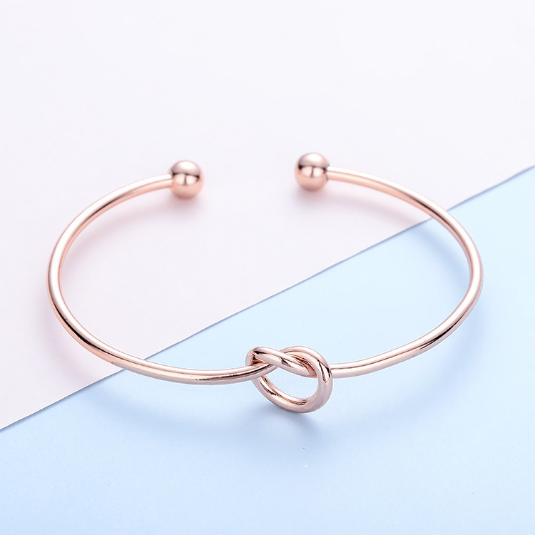 亚马逊爆款欧美热卖不锈钢女士手镯时尚简约心形打结开口手环臂环 投诉