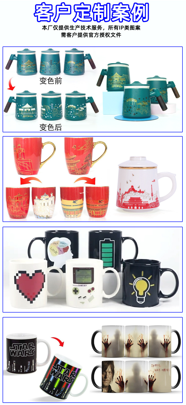 材质: 陶瓷 品牌: 其它 适用人群: 通用 风格: 创意潮流 颜色: 感温变色【来图定制】 容量: 301-400ml 专利: 否 是否跨境出口专供货源: 否 产地: 广东 是否属于礼品: 是,商务礼品 版权: 无 货号: 2401230 全国工业生产许可证编号 : 无 重量: 0.318 kg/个