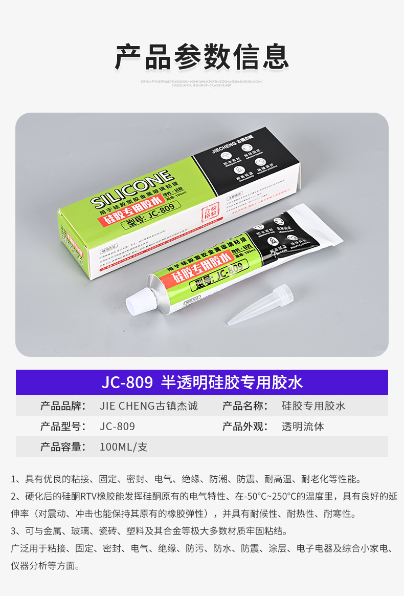 JC-809耐高低温密封胶硅胶粘接防水硅胶金属玻璃塑料陶瓷粘合剂