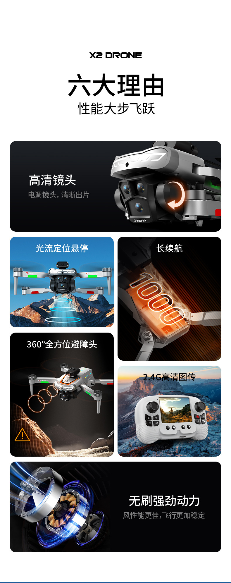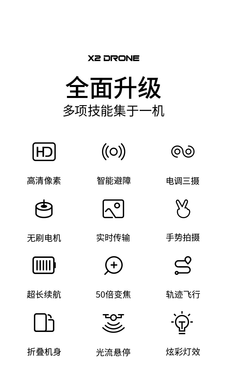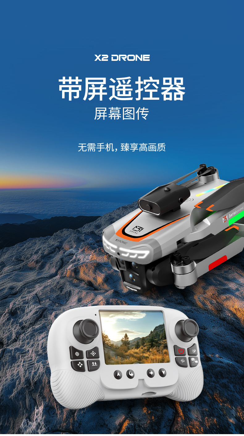 跨境无人机星巡X2屏控无刷避障航拍飞机光流电调双摄四轴飞行器
