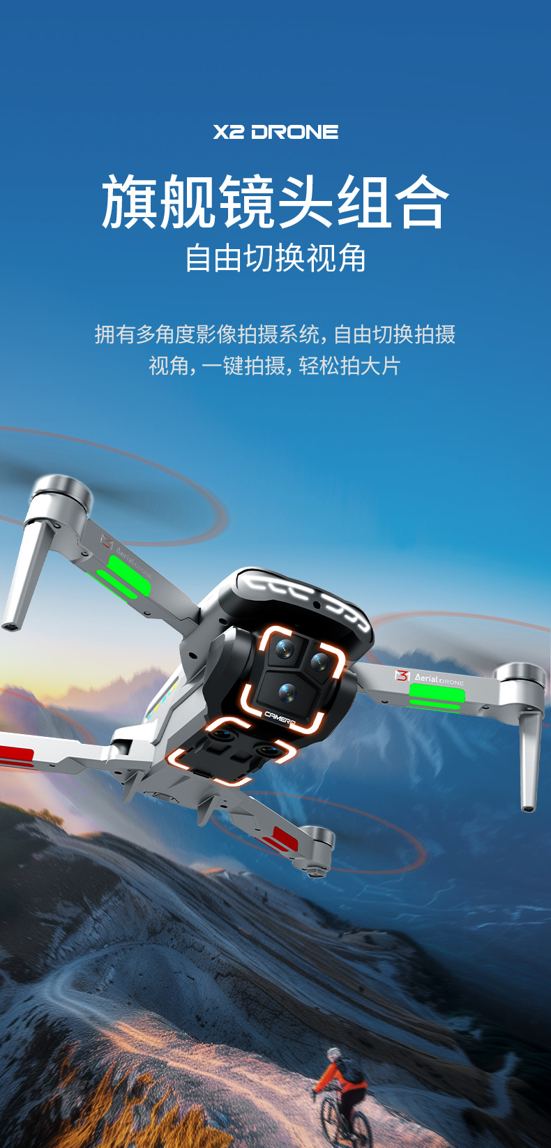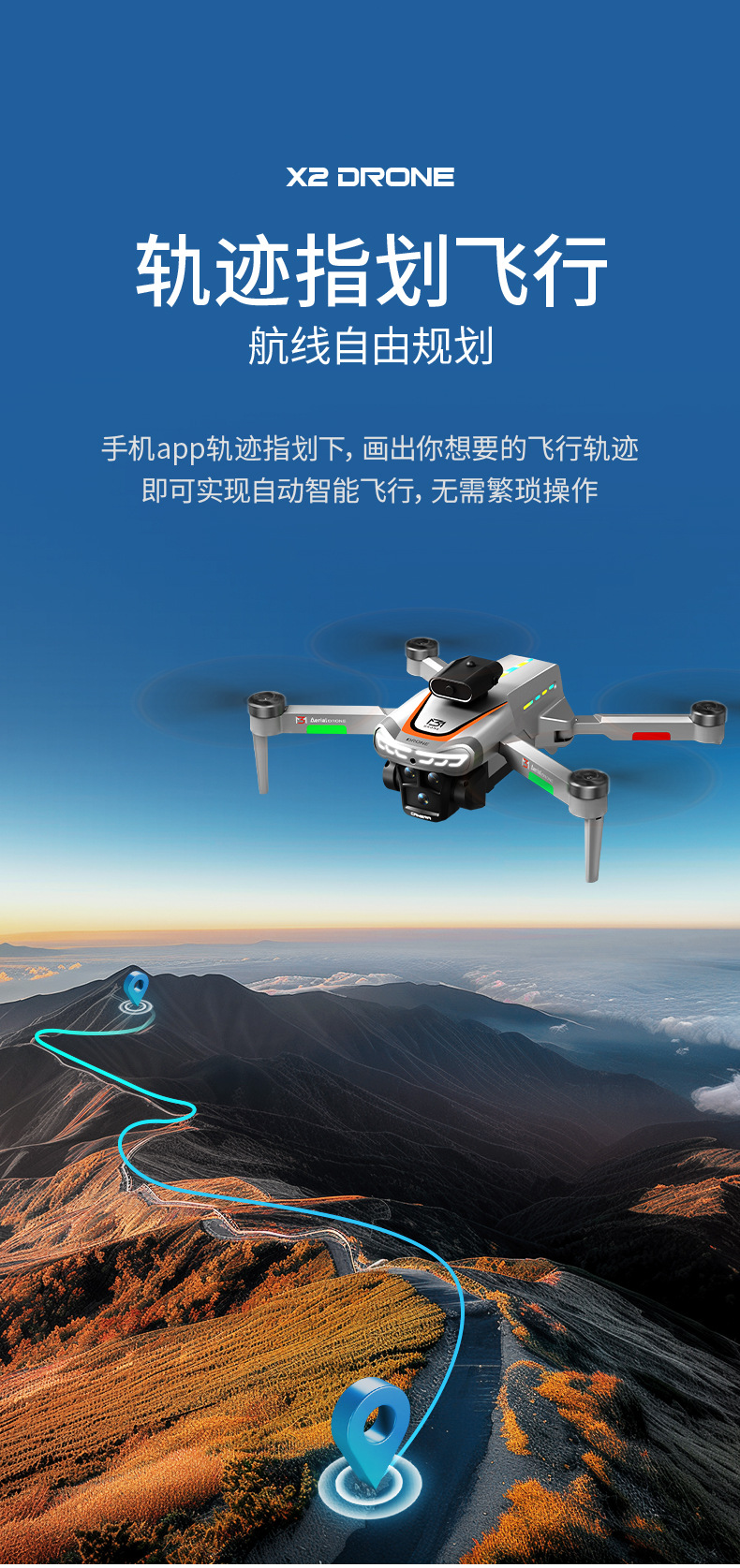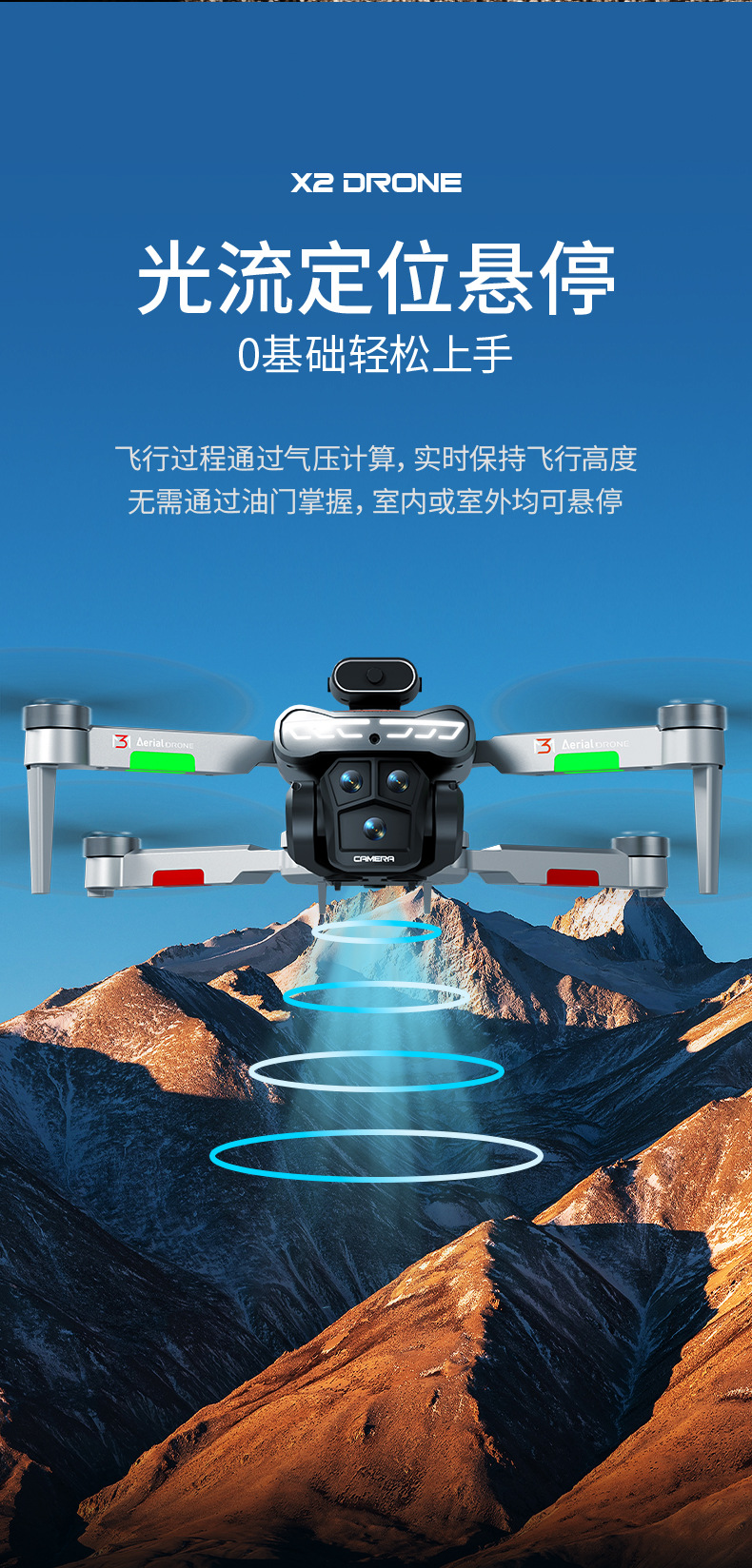 跨境无人机星巡X2屏控无刷避障航拍飞机光流电调双摄四轴飞行器