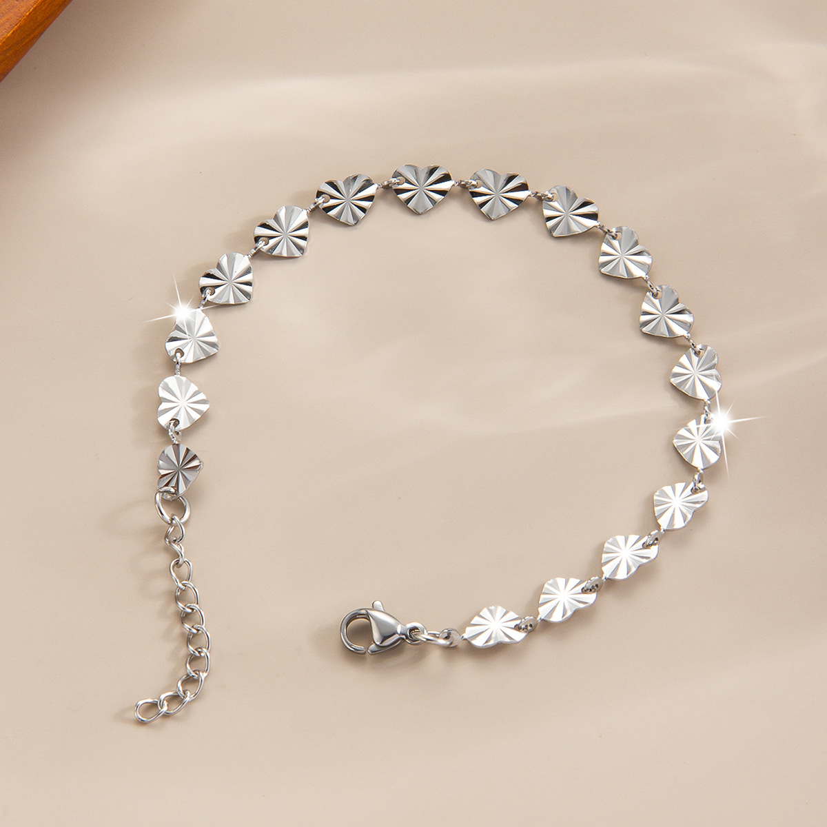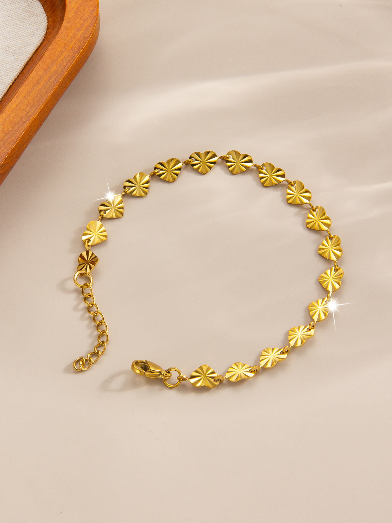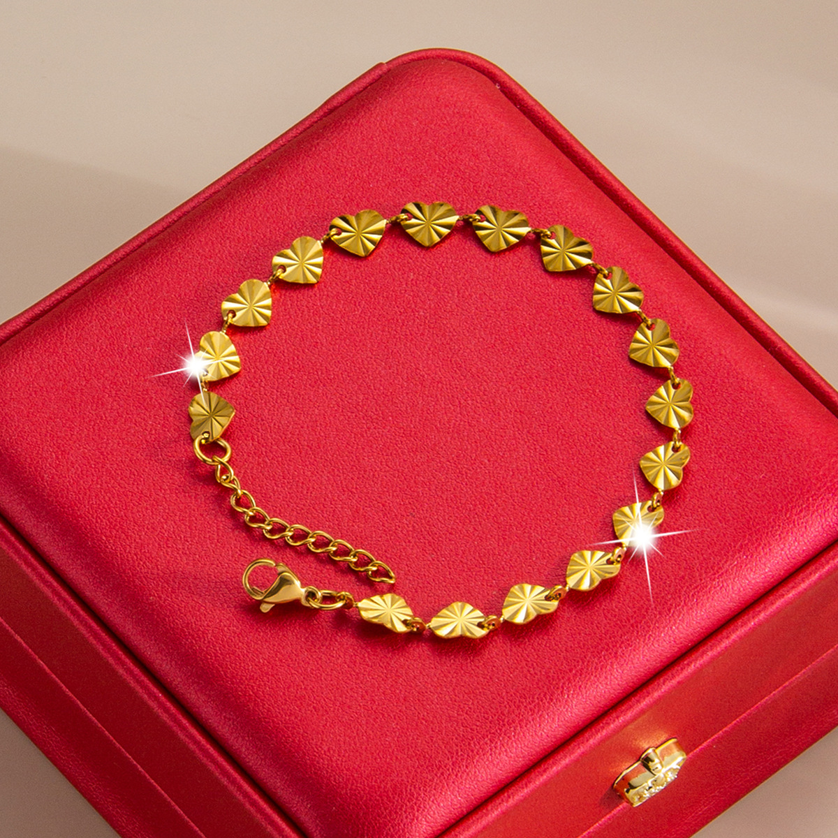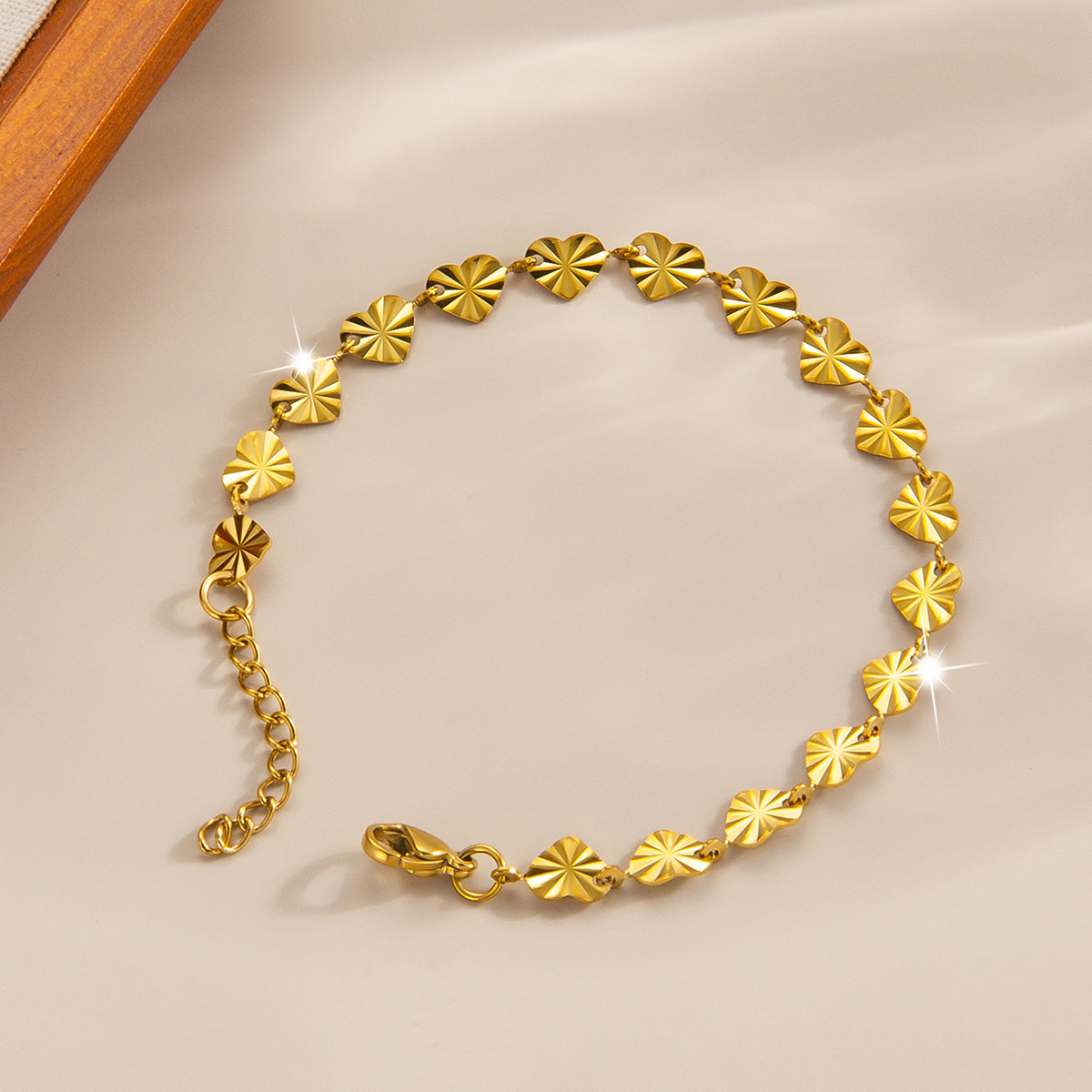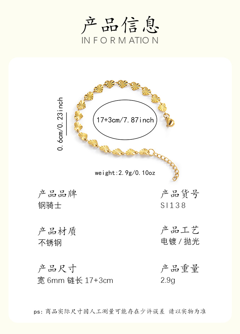 压花爱心钛钢手链镀金18k百搭手镯欧美高级感轻奢女士手链批发 English | 投诉