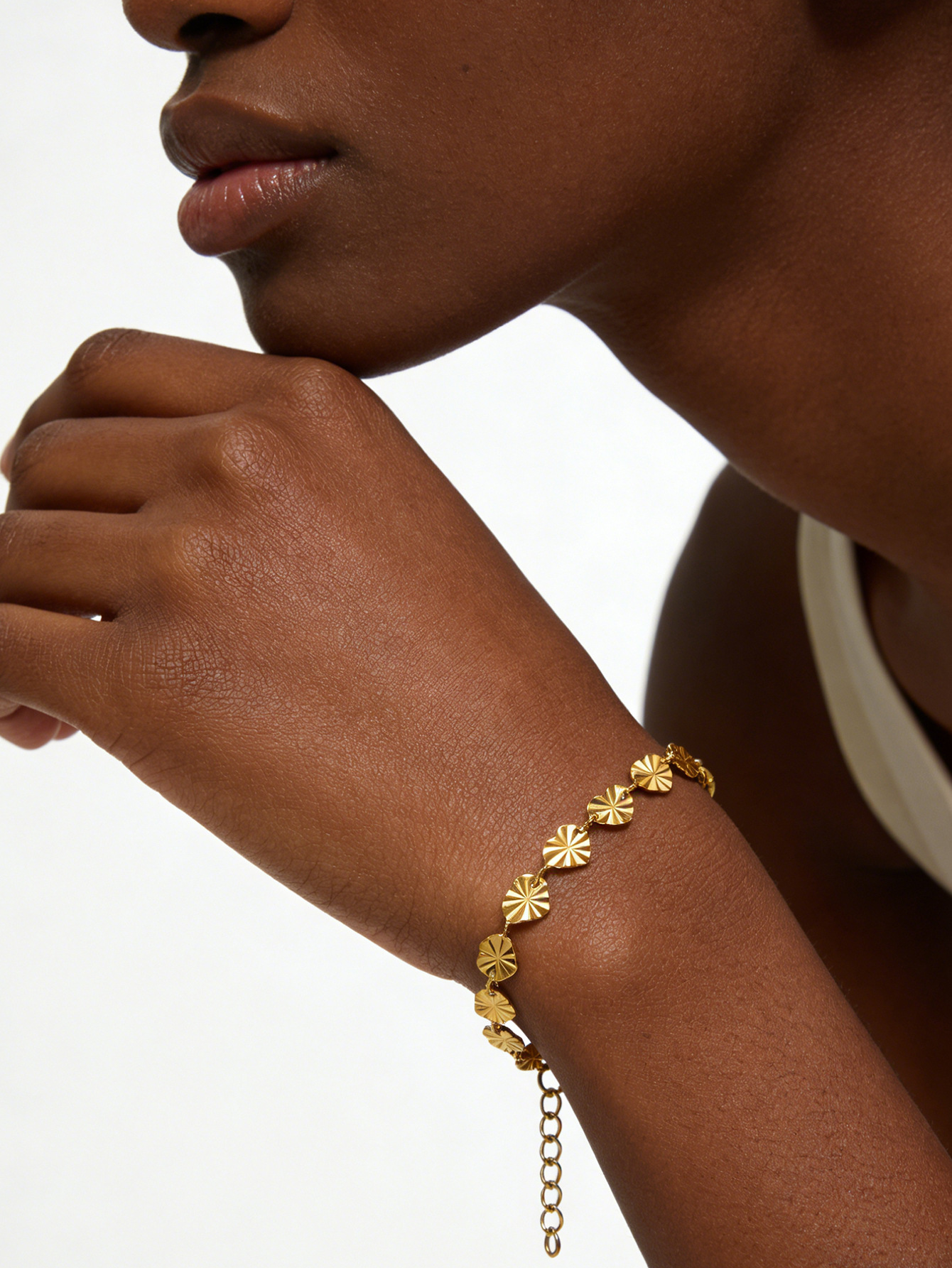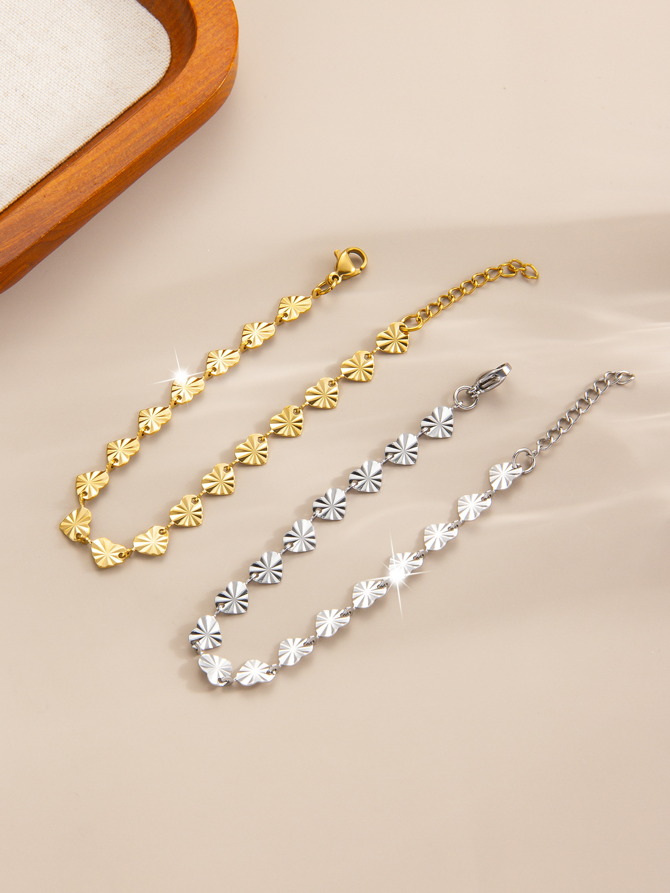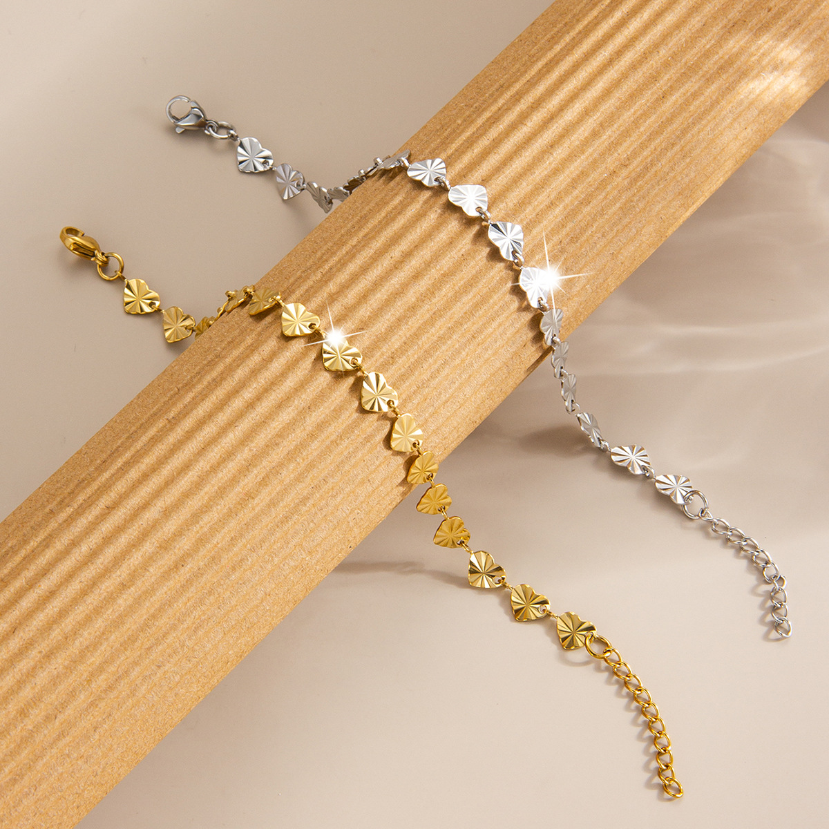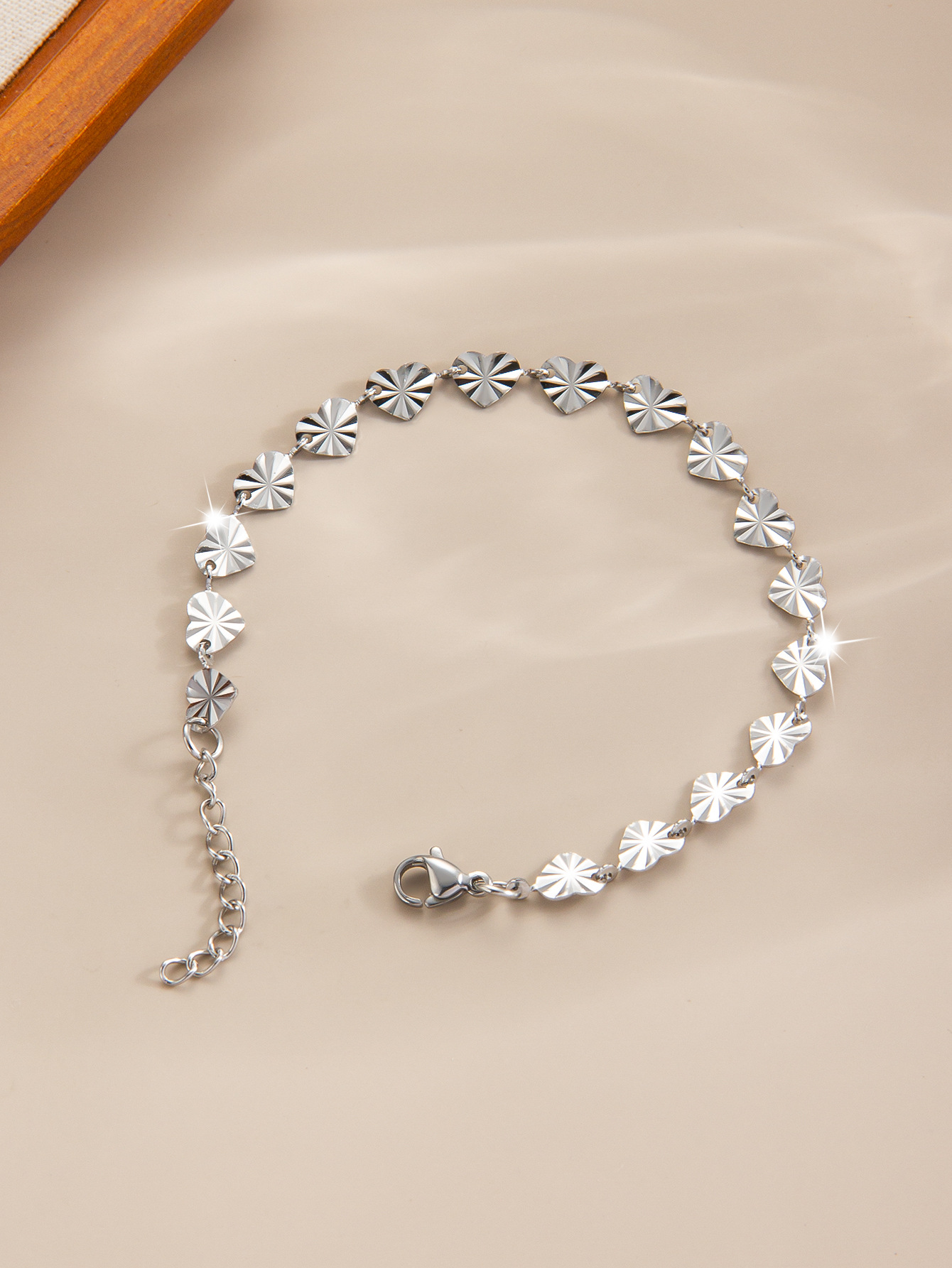 压花爱心钛钢手链镀金18k百搭手镯欧美高级感轻奢女士手链批发 English | 投诉
