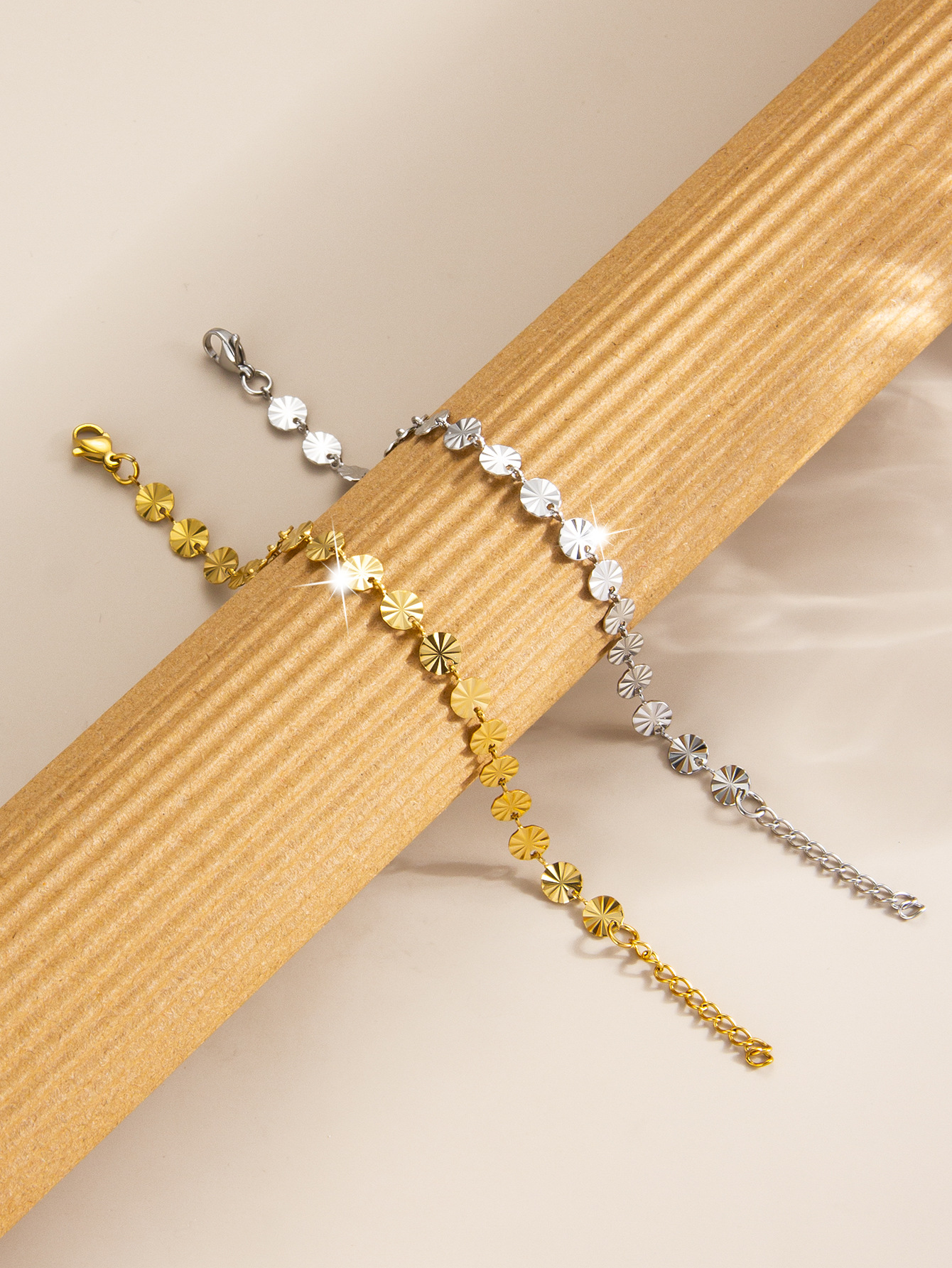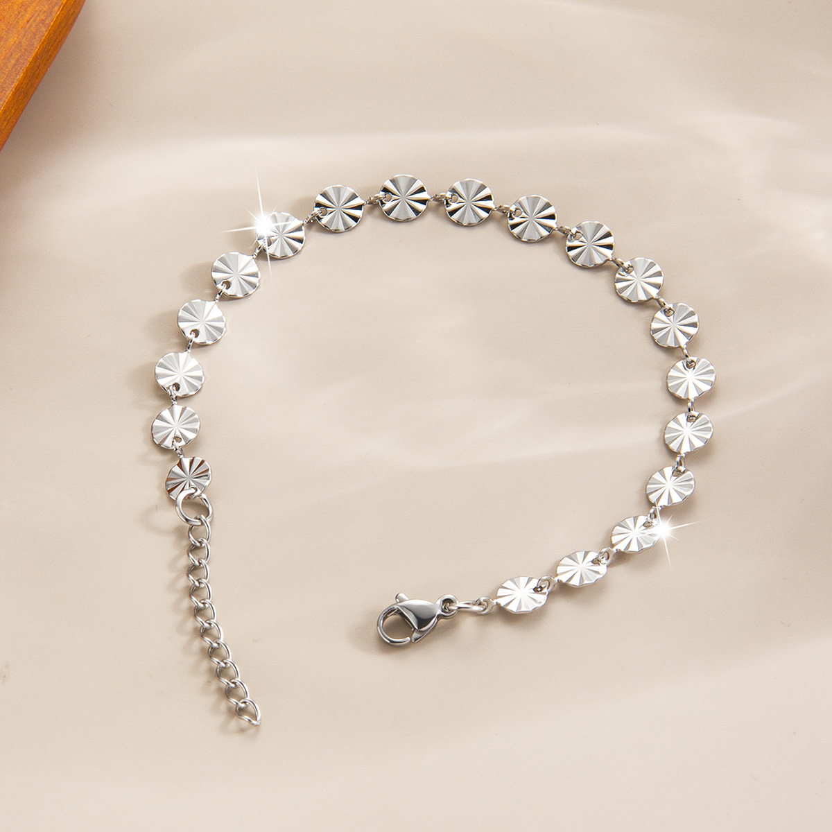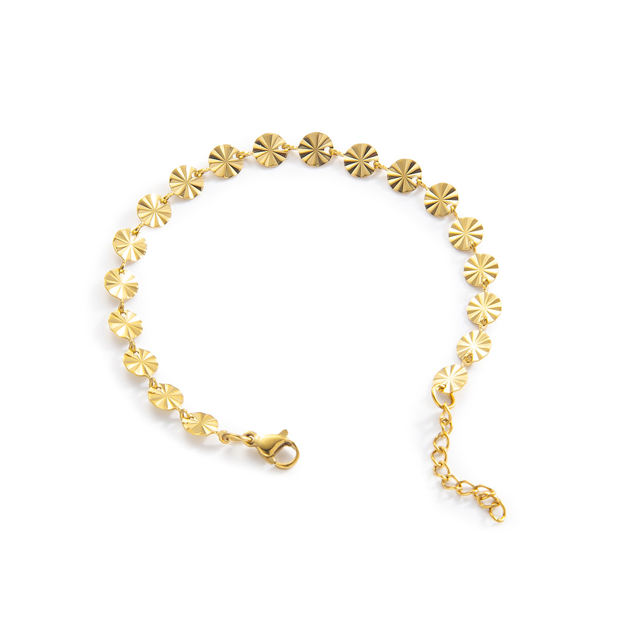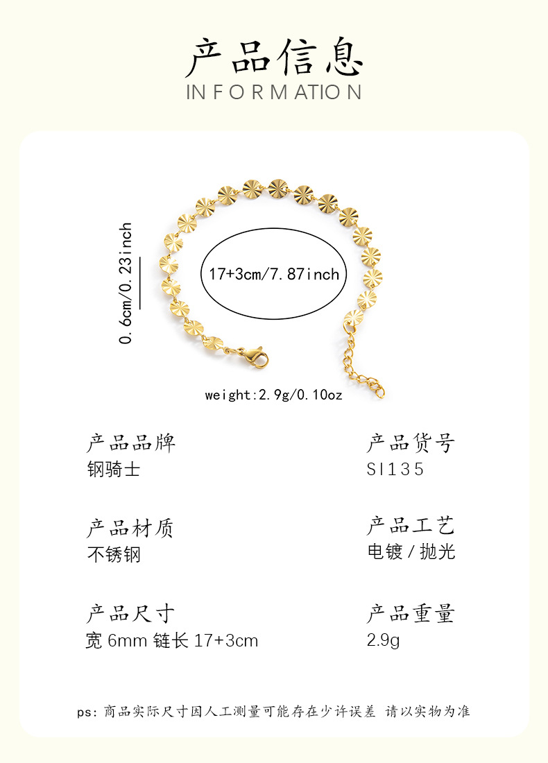 跨境18k压花钛钢手链时尚几何圆形链条手镯欧美简约女士手链批发 English | 投诉