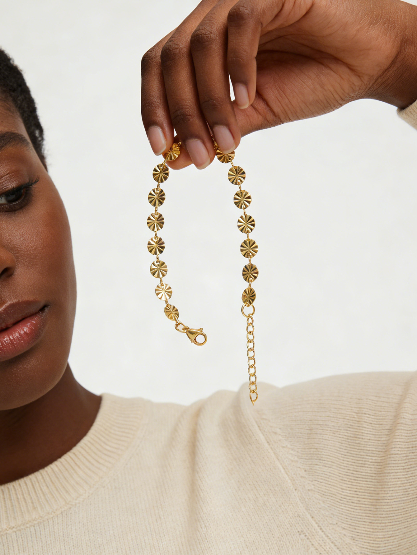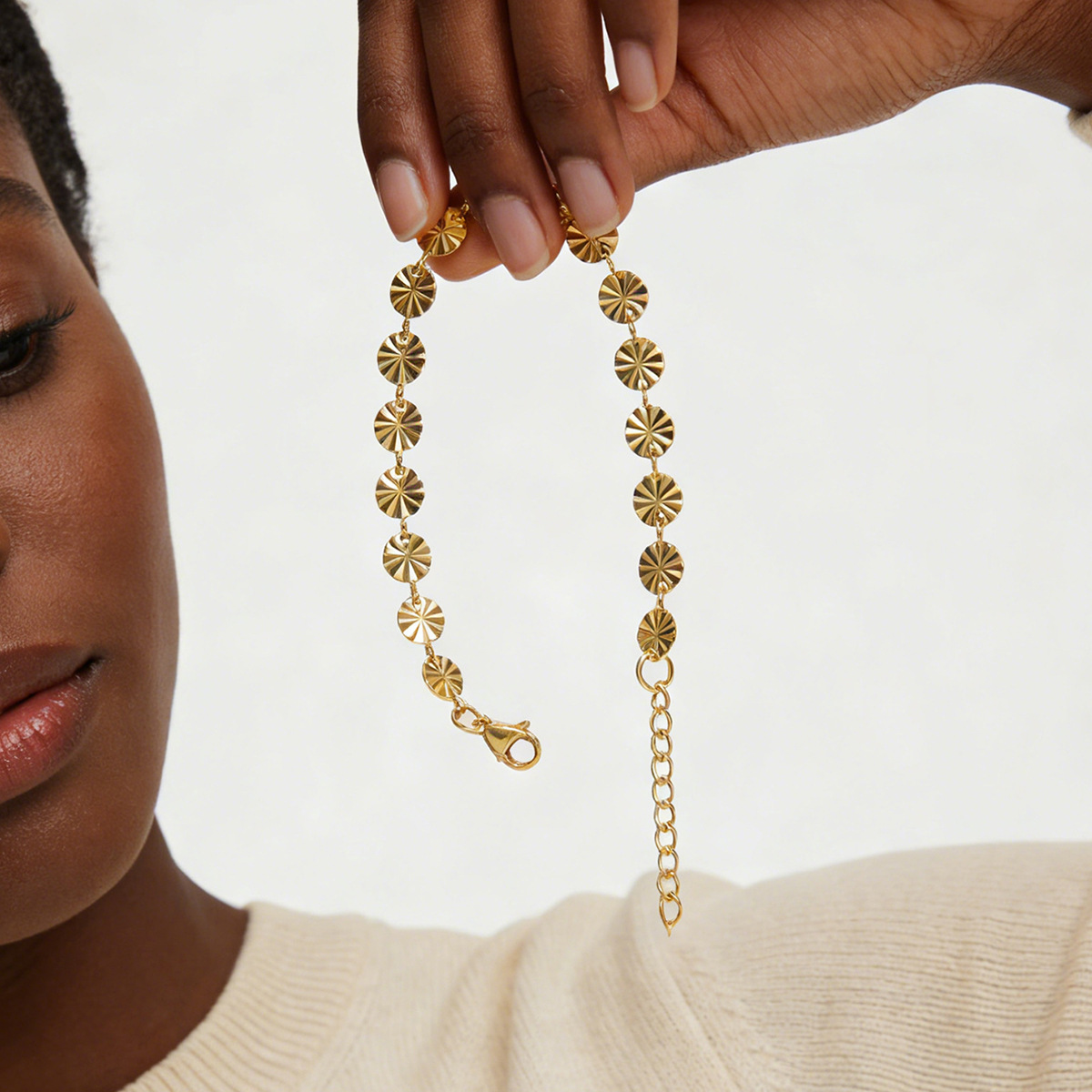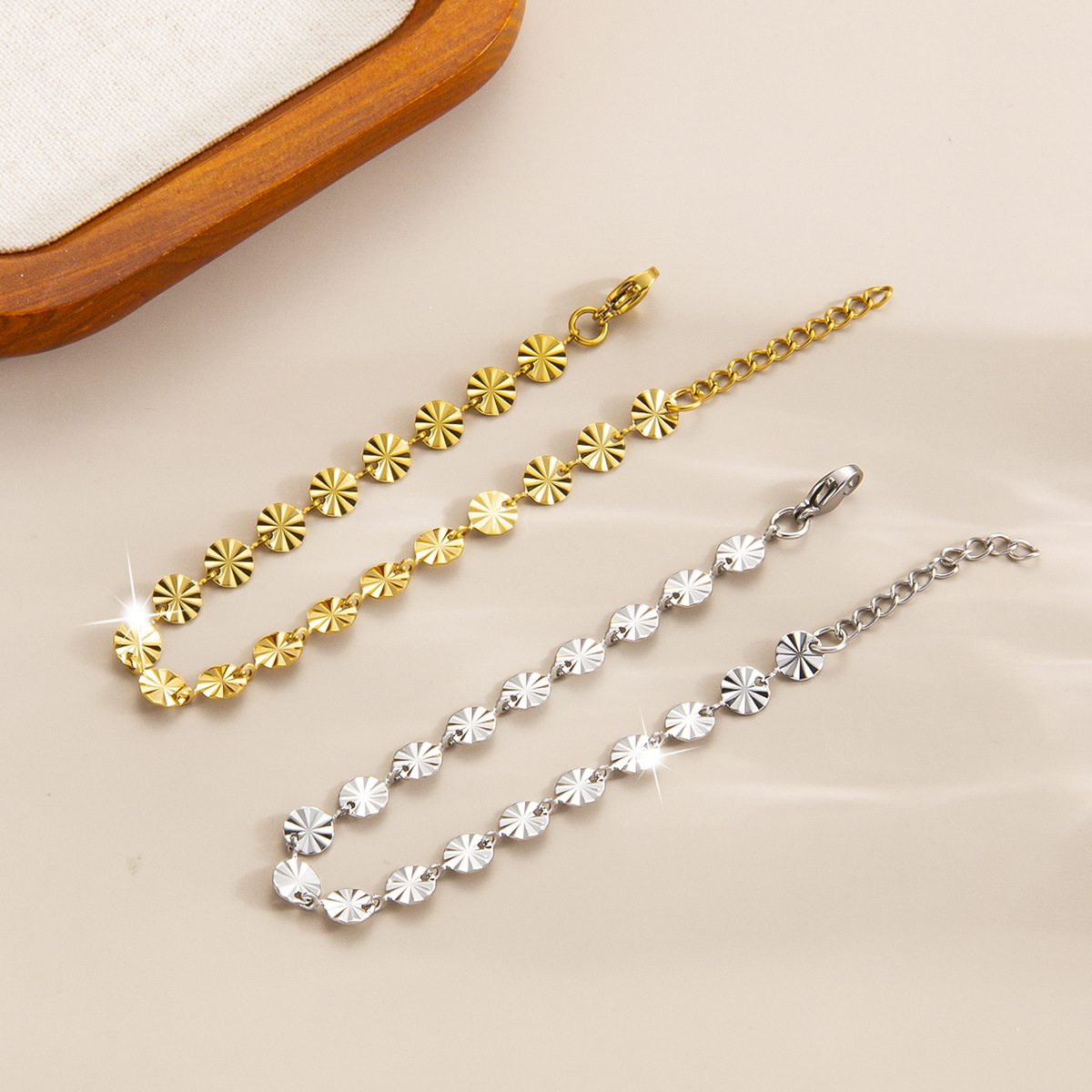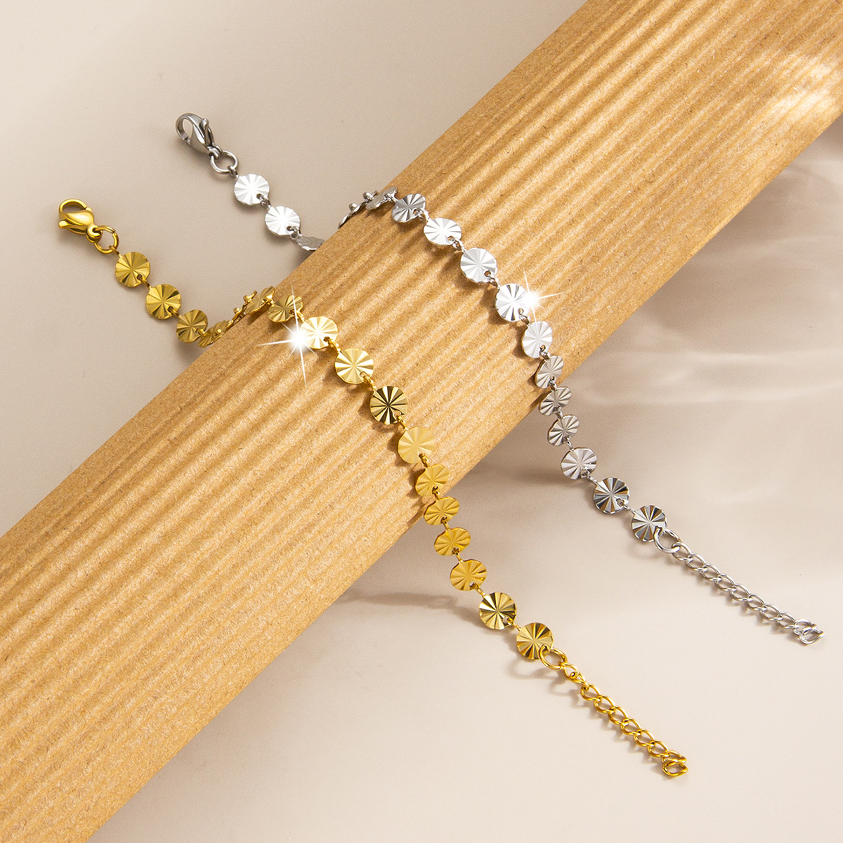 跨境18k压花钛钢手链时尚几何圆形链条手镯欧美简约女士手链批发 English | 投诉