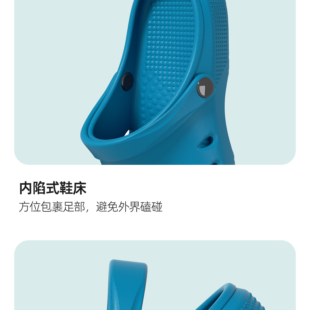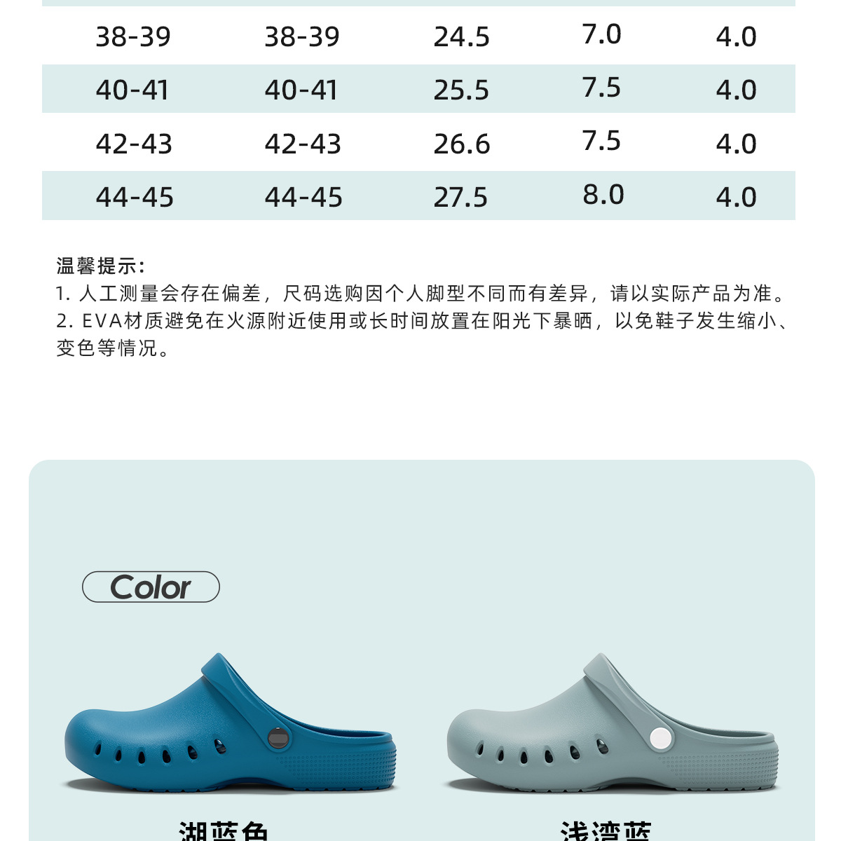 温馨提示:EVA材质拖鞋需避免高温暴晒,长时间高温会导致鞋子产生变形。