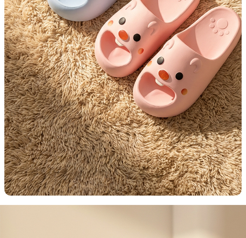 温馨提示:EVA材质拖鞋需避免高温暴晒,长时间高温会导致鞋子产生变形。
