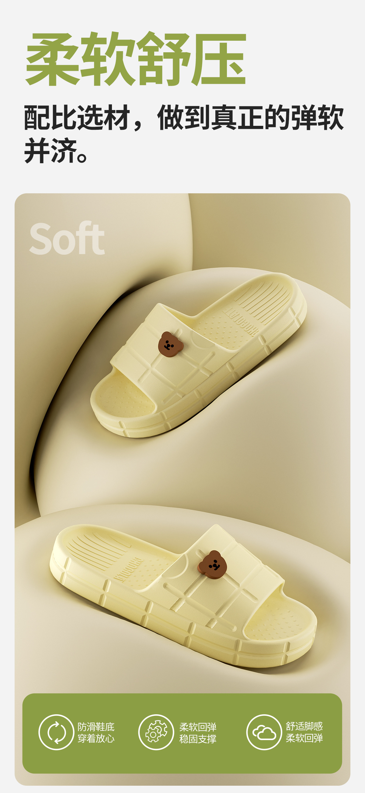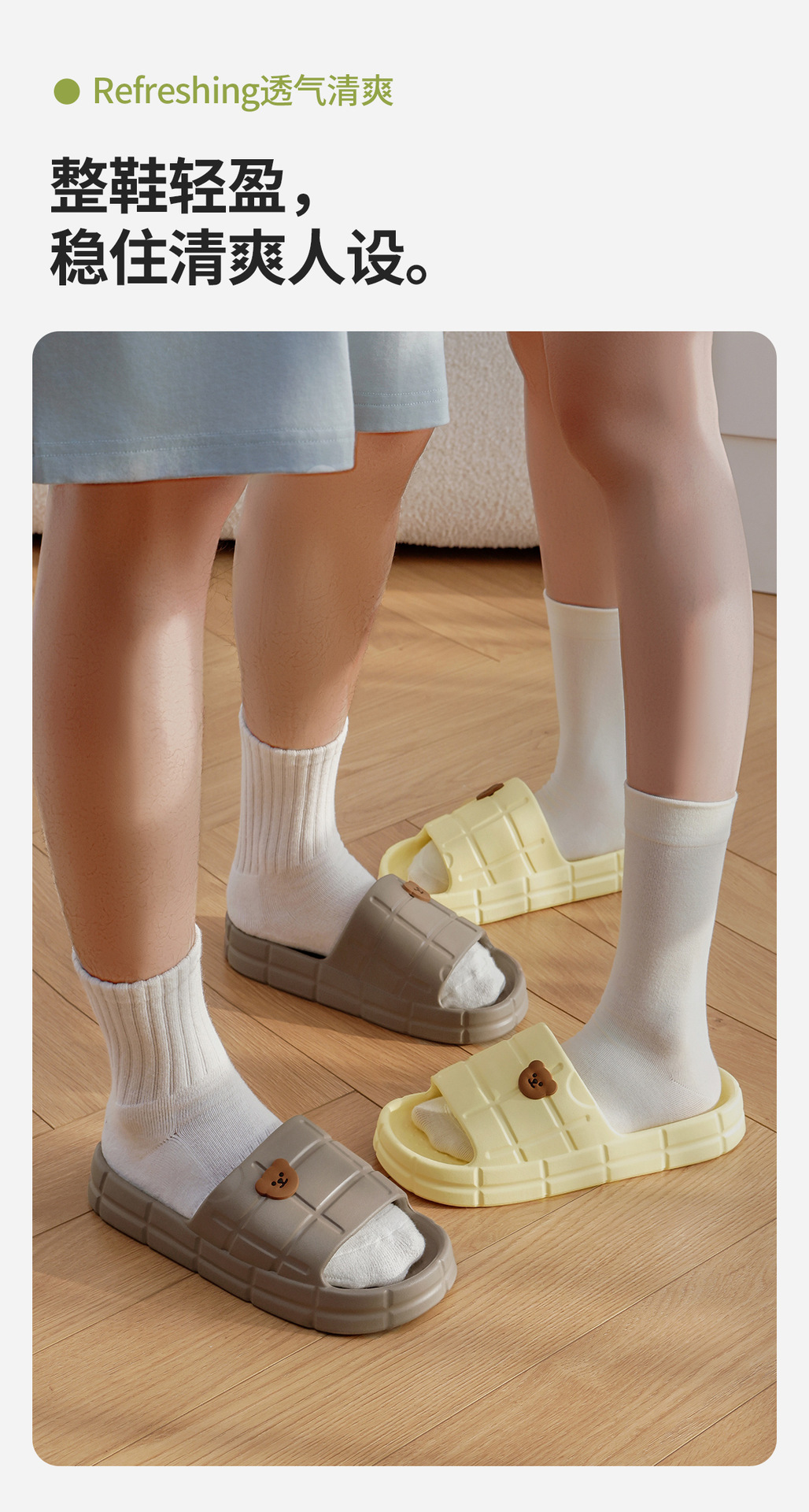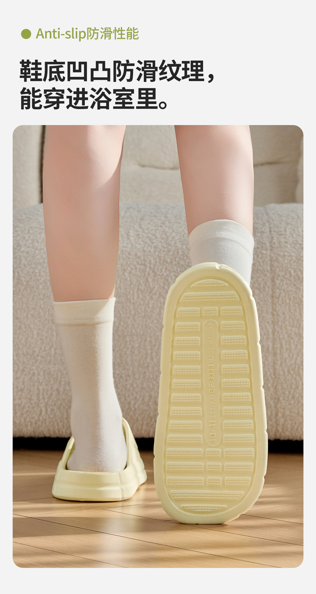 温馨提示:EVA材质拖鞋需避免高温暴晒,长时间高温会导致鞋子产生变形。