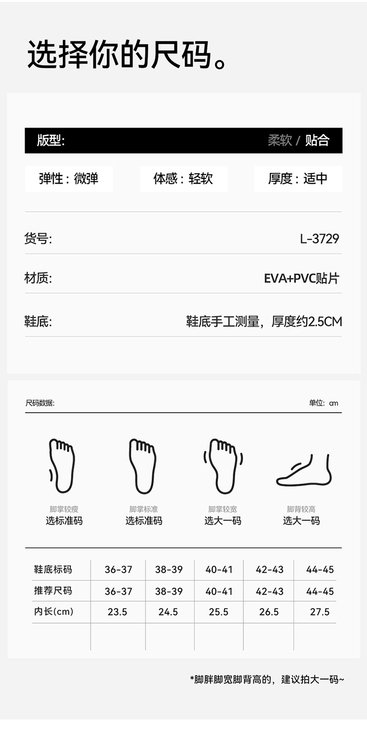 尺码问题:拖鞋偏小一点(卡码,脚宽,脚胖建议选大一码),拍前可联系客服。