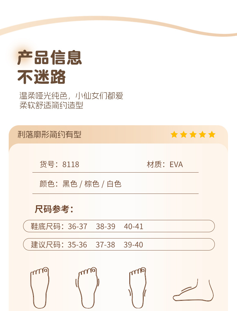 温馨提示:EVA材质拖鞋需避免高温暴晒,长时间高温会导致鞋子产生变形。