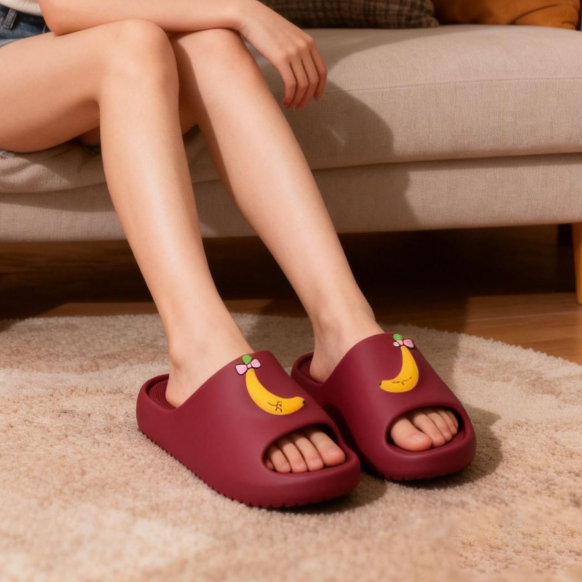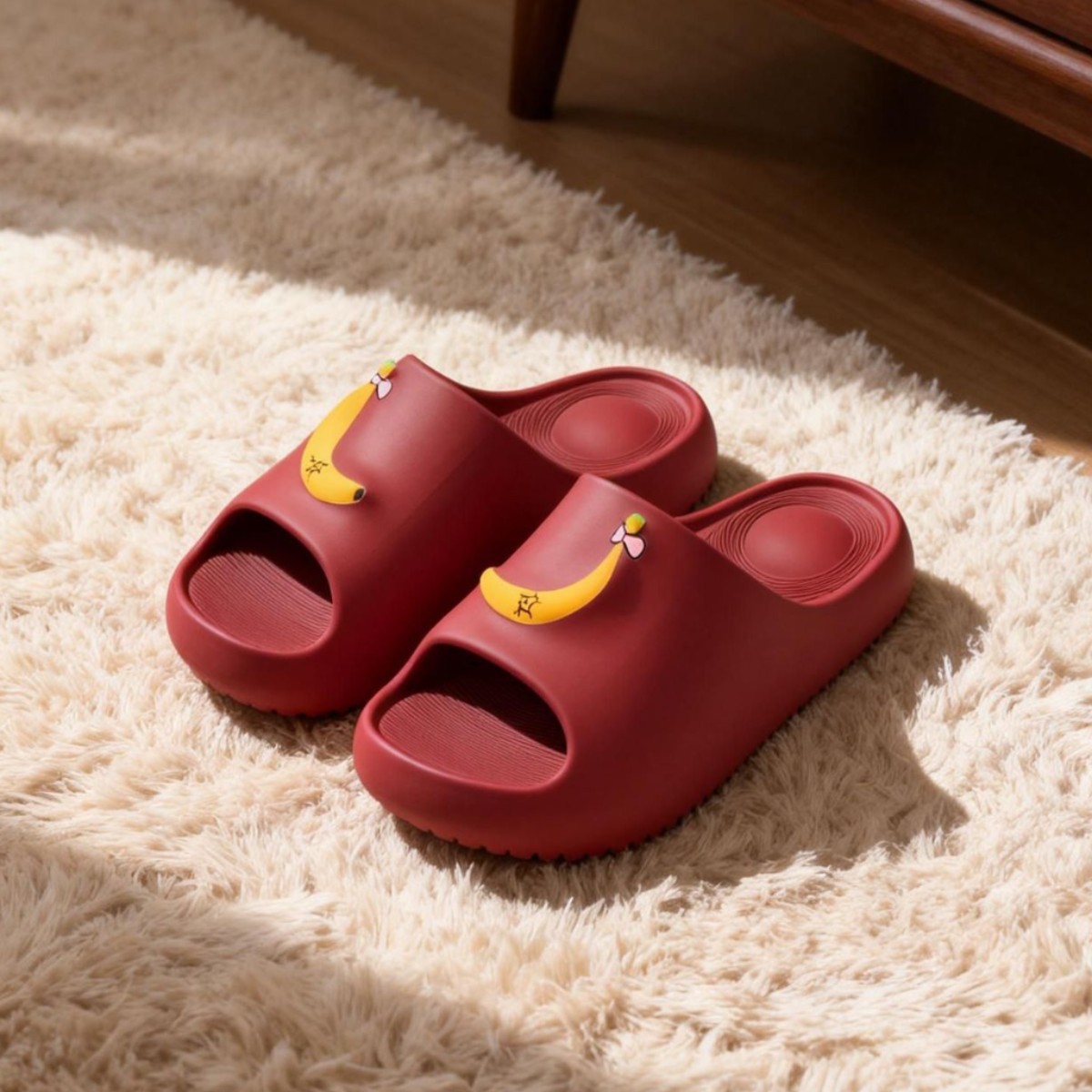 温馨提示:EVA材质拖鞋需避免高温暴晒,长时间高温会导致鞋子产生变形。