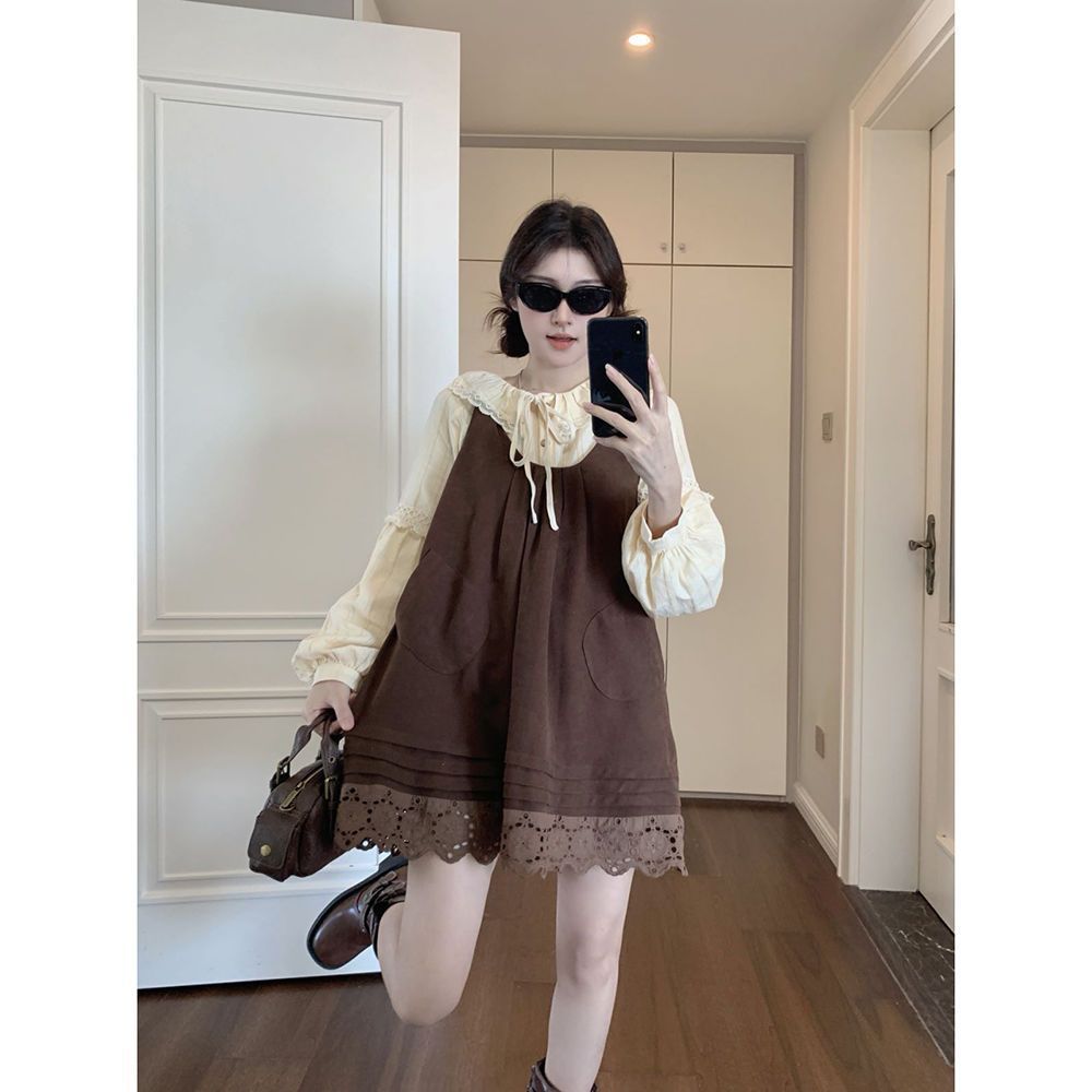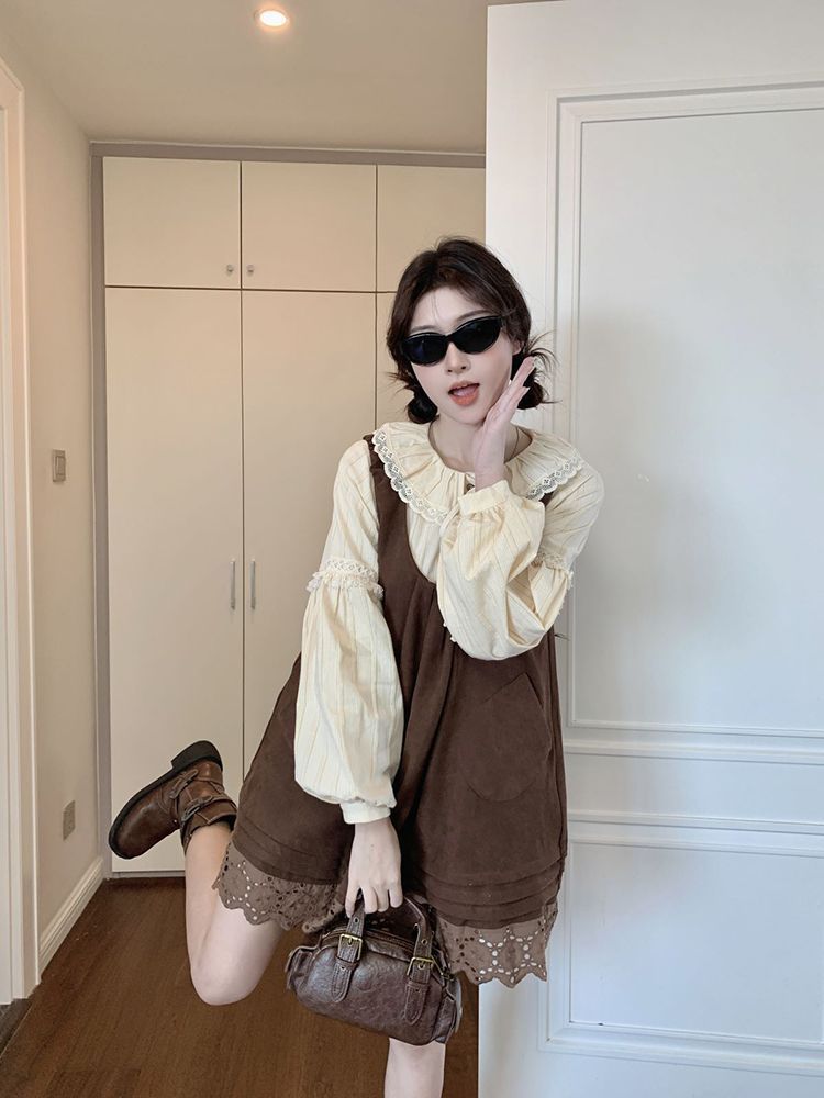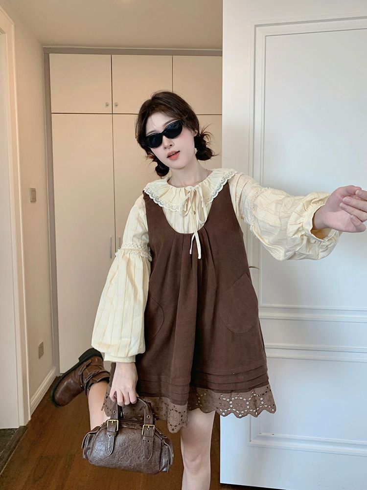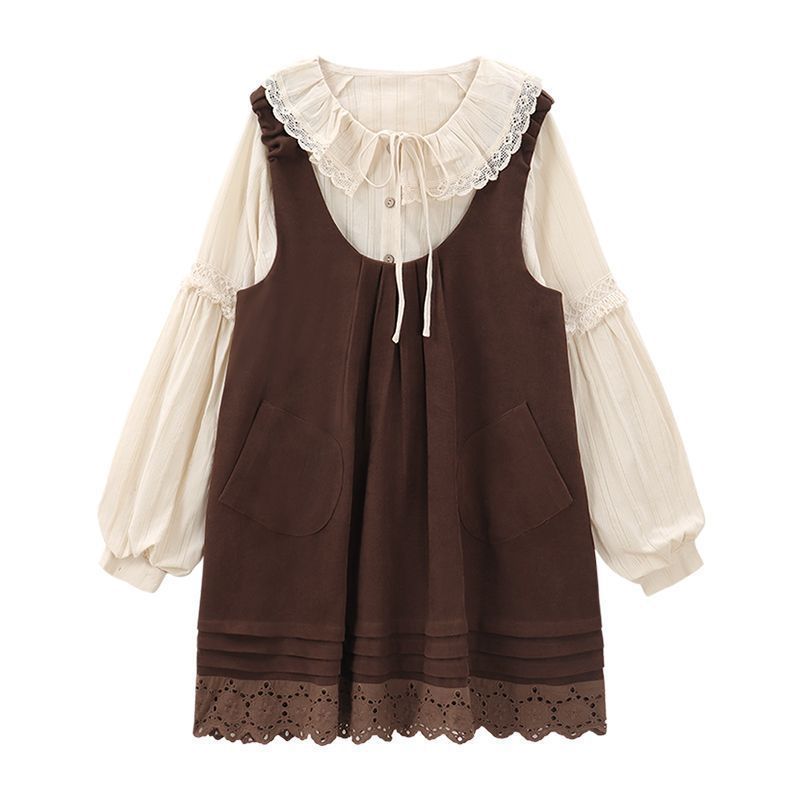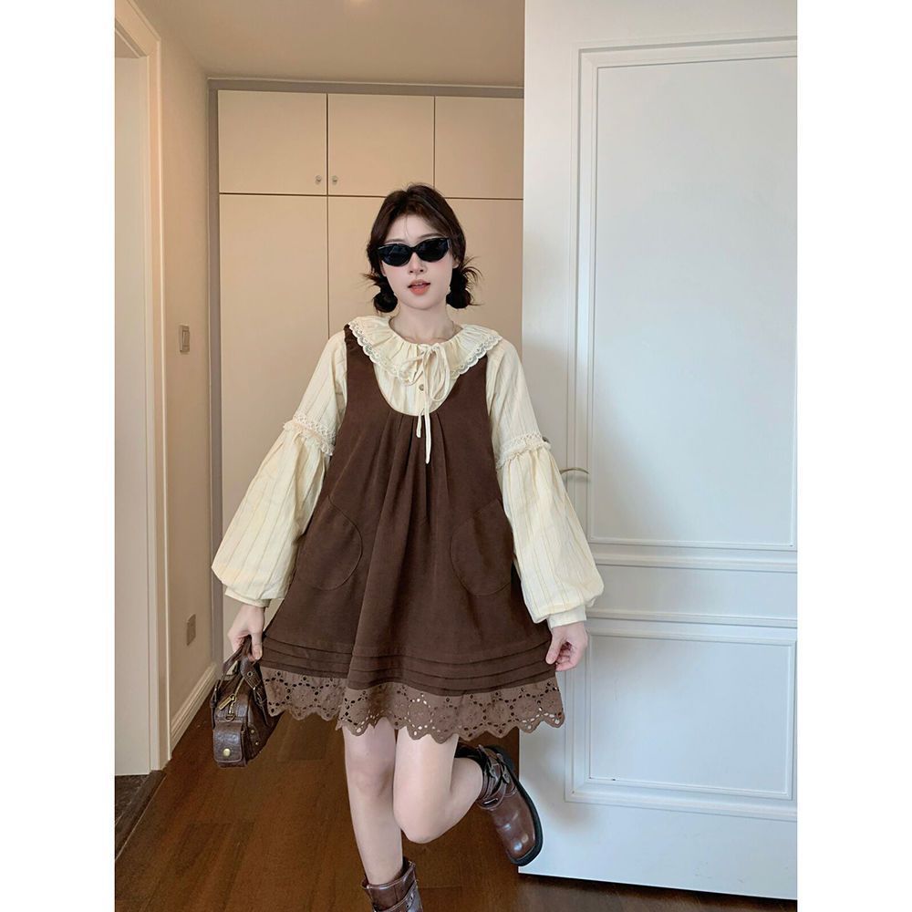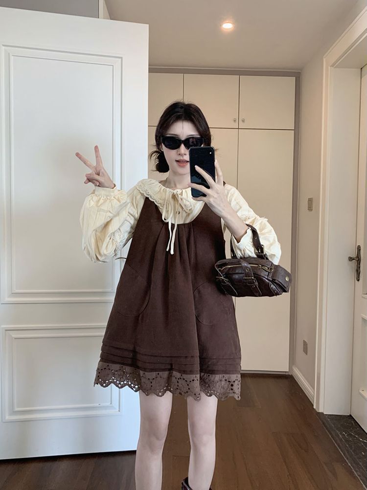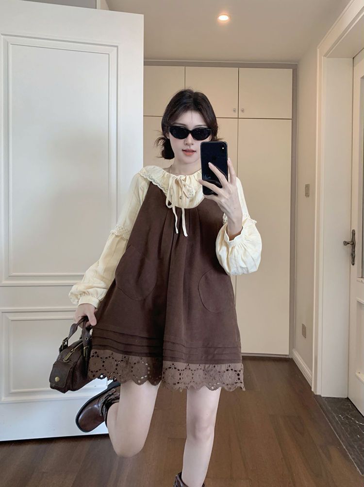 女童韩系拼接宽松叠穿娃娃裙套装中大童春秋新款气质背带裙套装潮 投诉