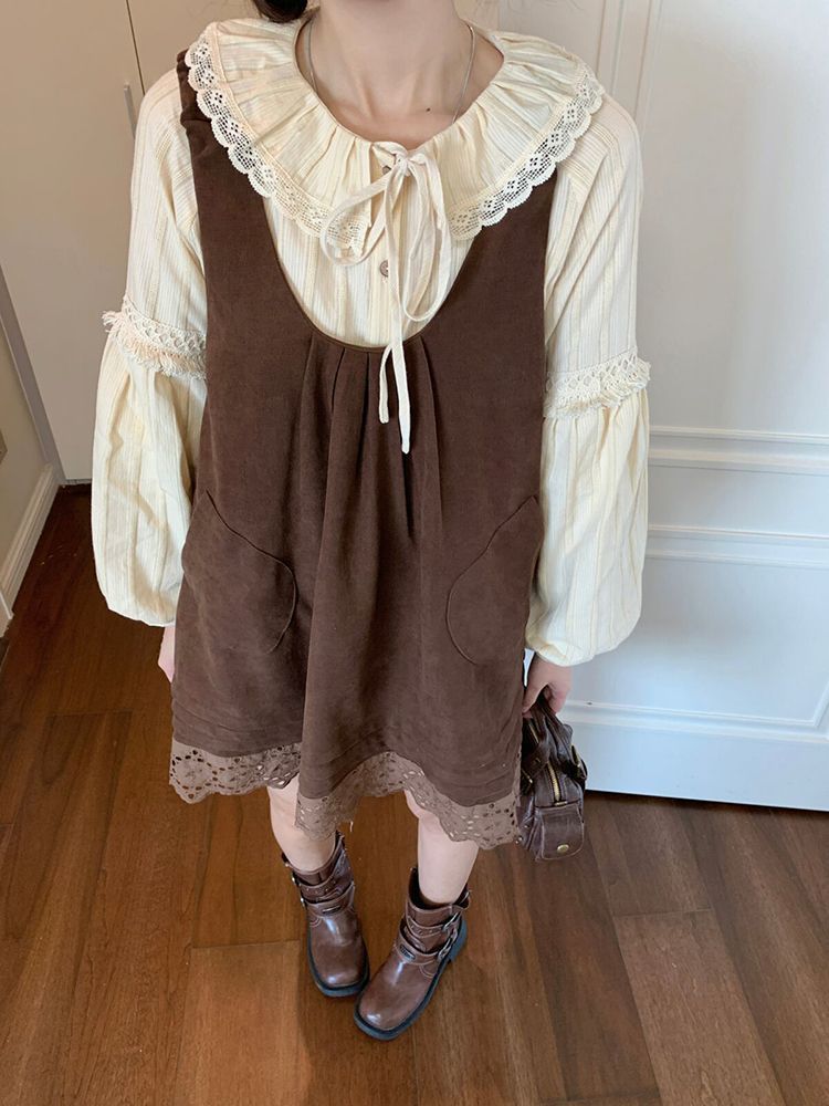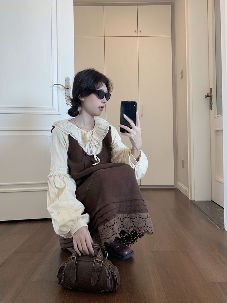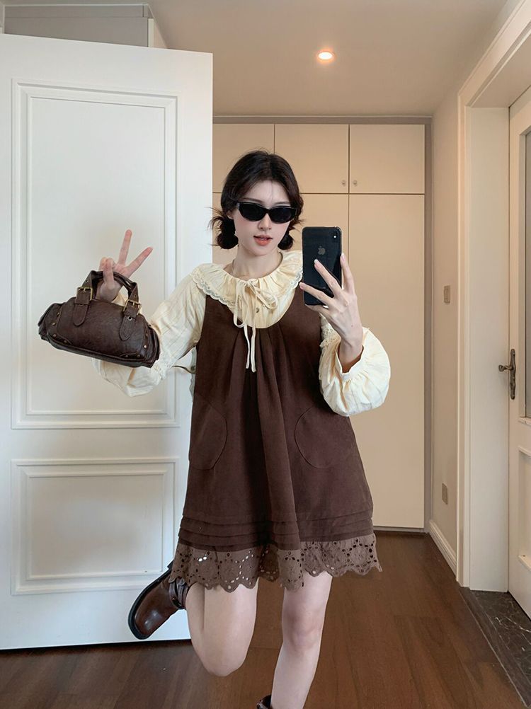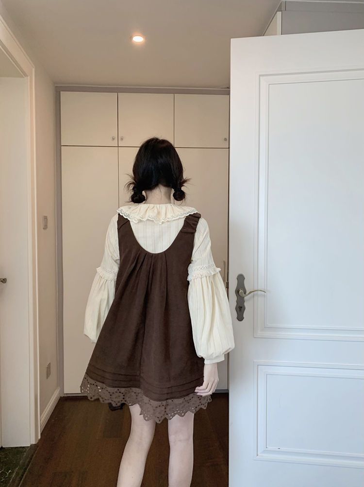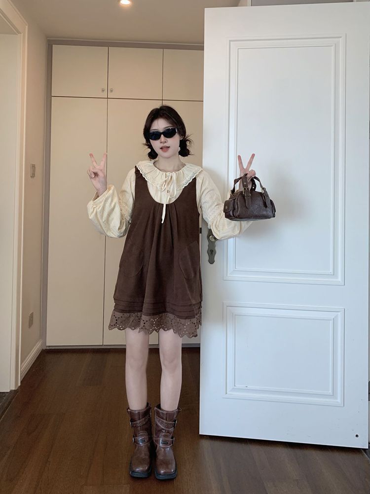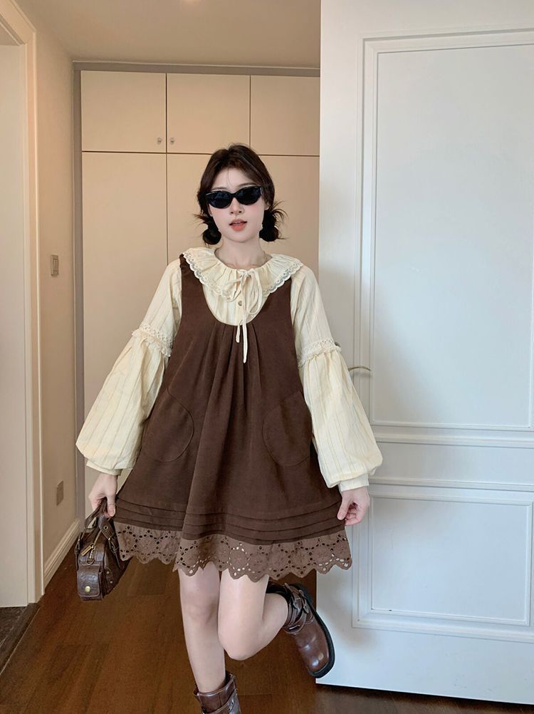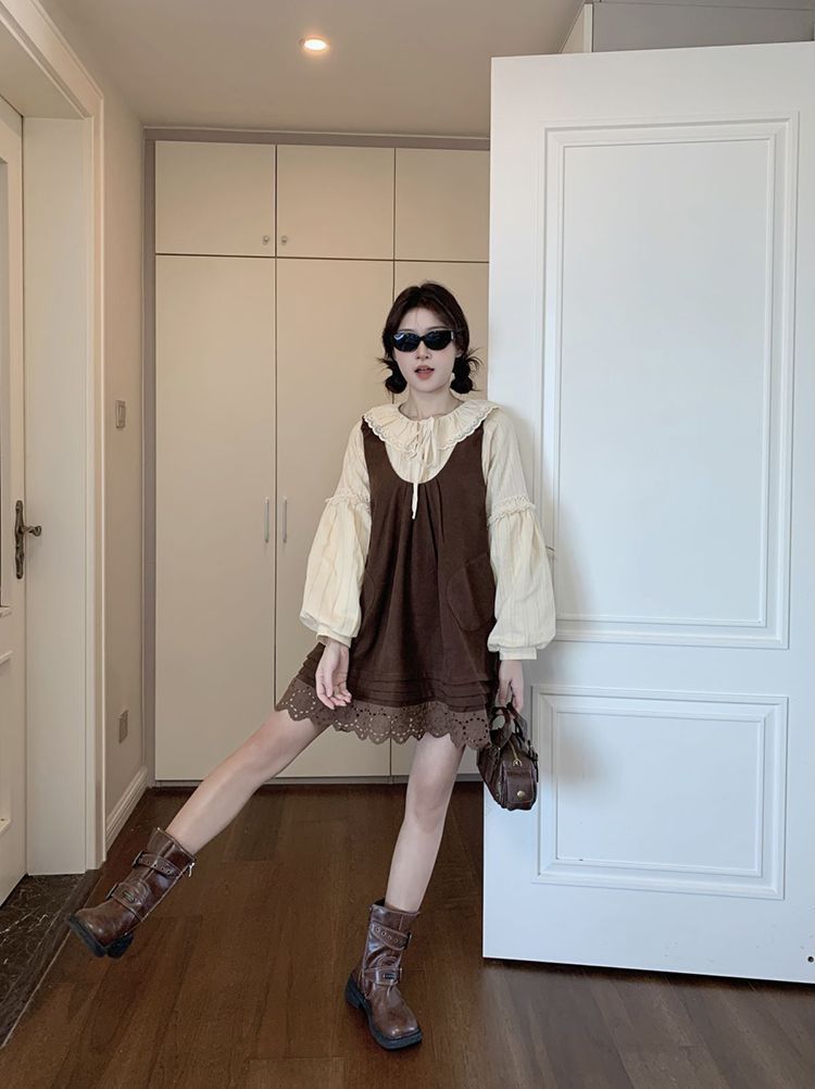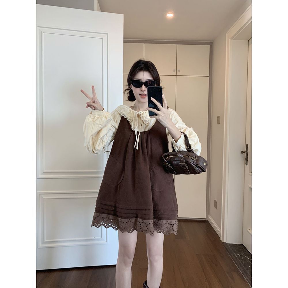 女童韩系拼接宽松叠穿娃娃裙套装中大童春秋新款气质背带裙套装潮 投诉