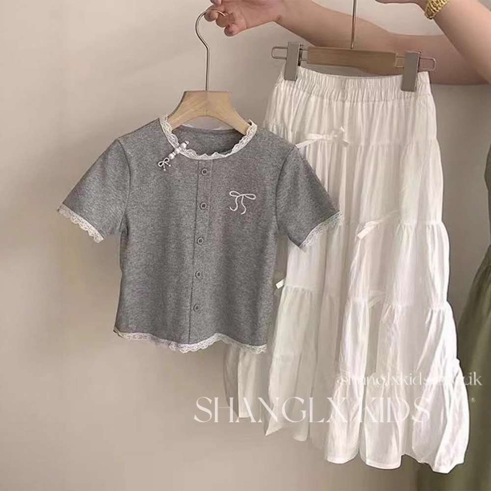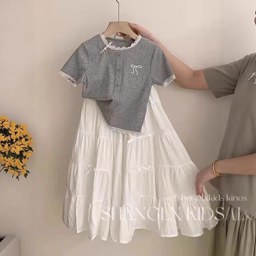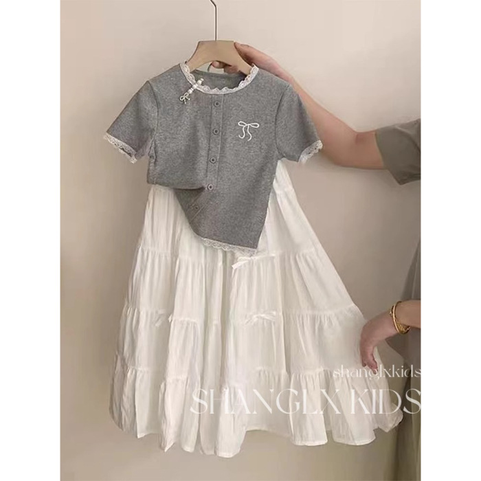 女童时尚套装洋气时髦裙子2025新款高级感夏装超好看绣花短袖T恤