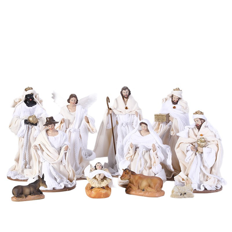 跨境礼品圣诞树脂摆件布艺马槽圣家套装圣诞摆件40cm11件套