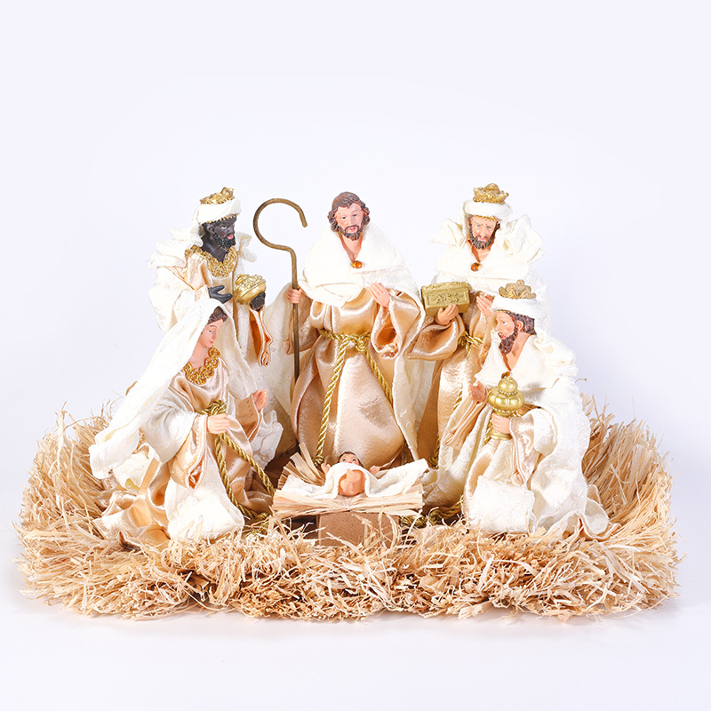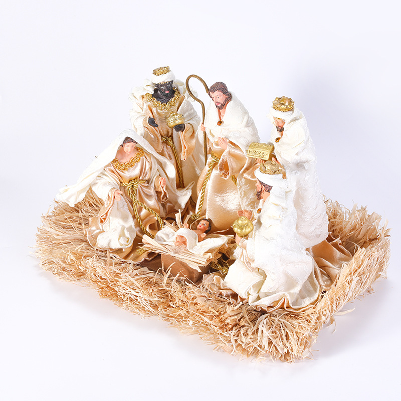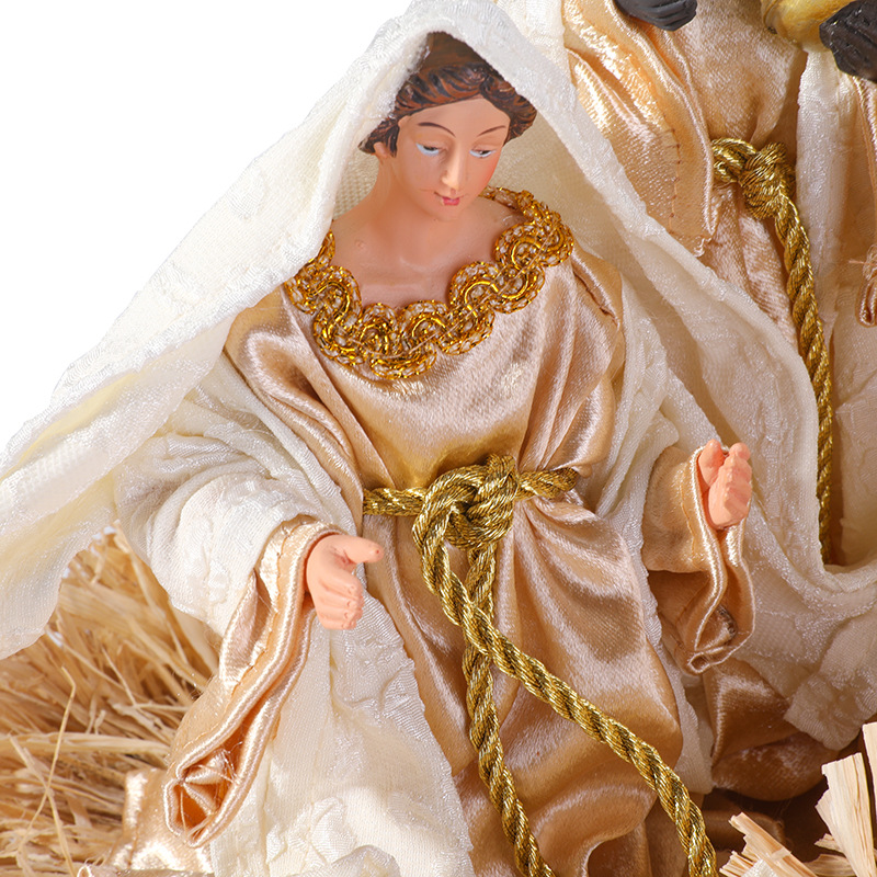 新品跨境 装饰圣诞节 耶稣马槽摆件树脂布艺桌面家具装饰