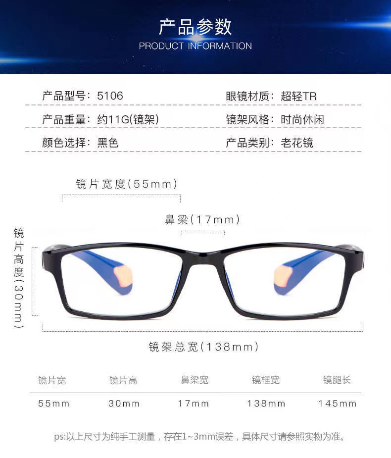| 防蓝光老花100度 | ¥111 | 8888290副可售 |