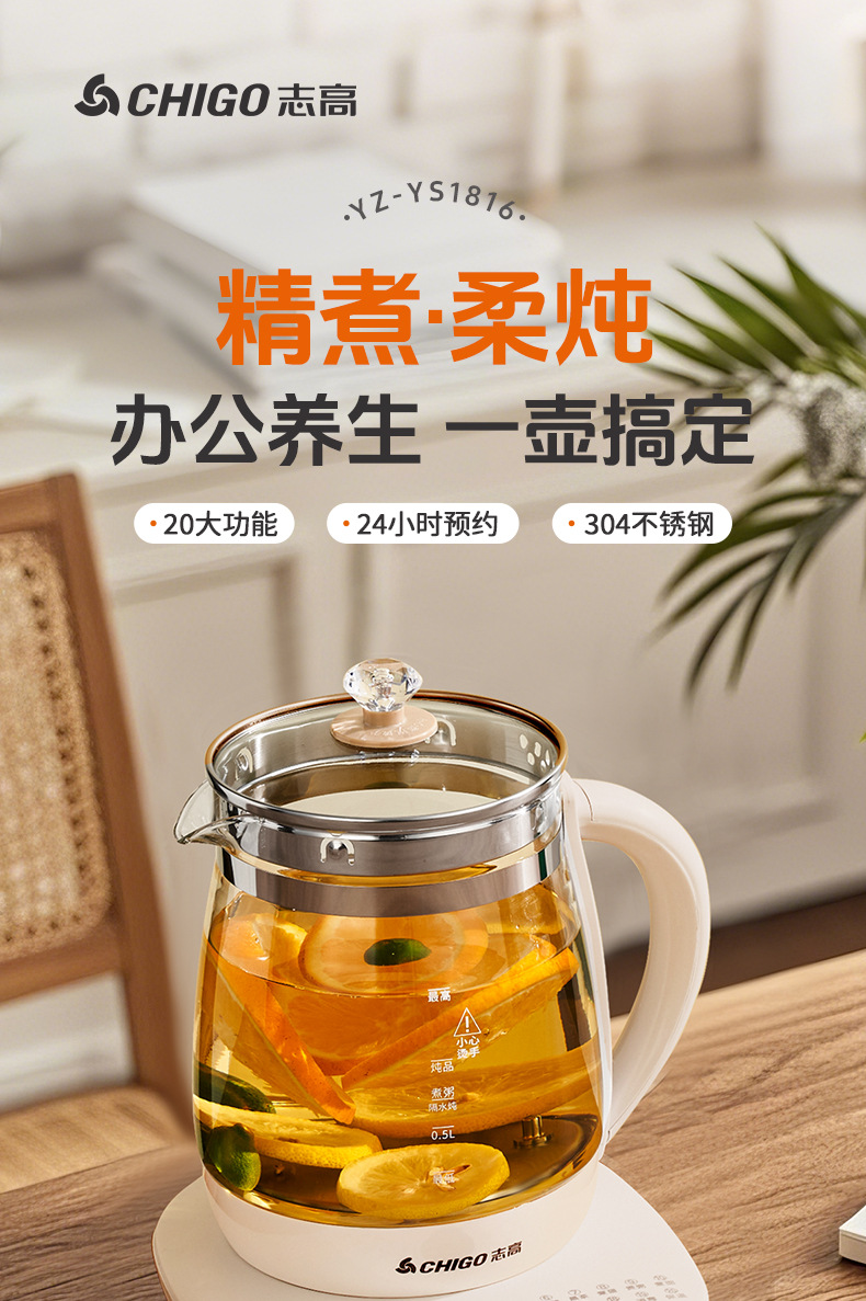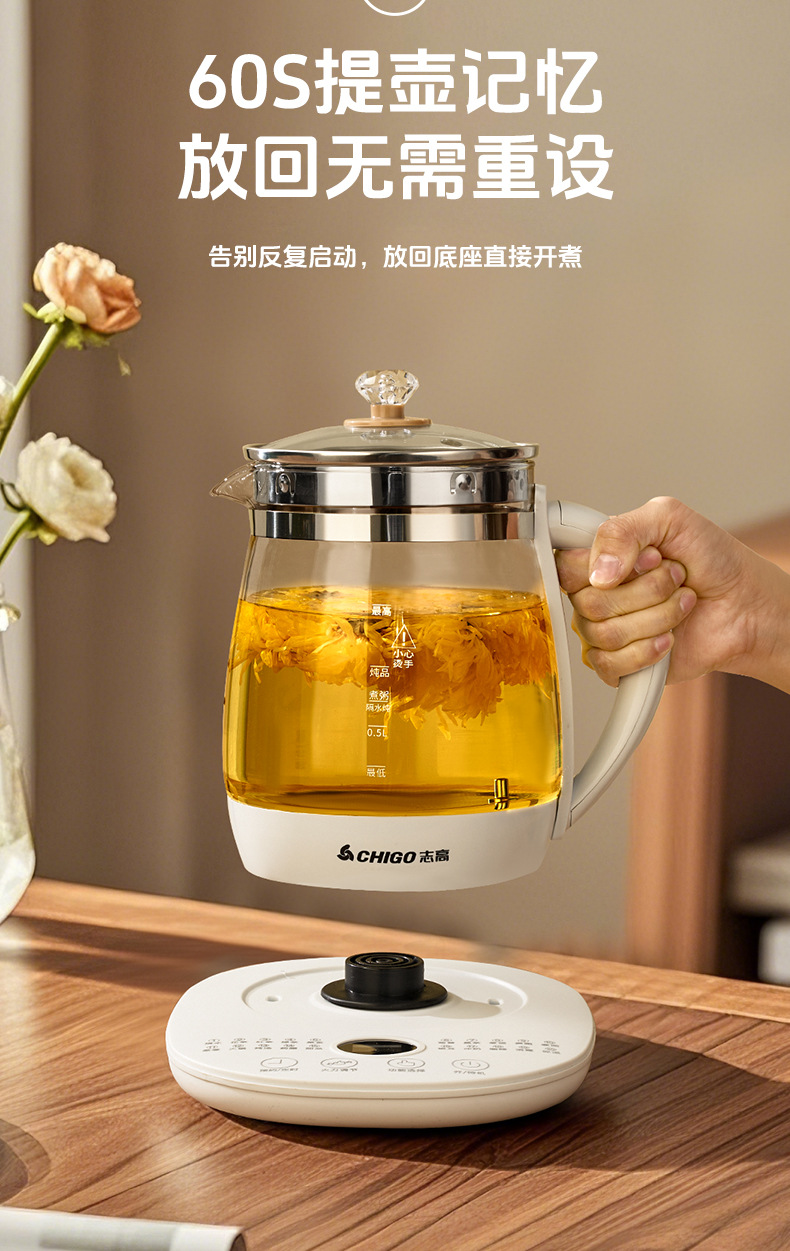 志高养生壶小型办公室烧茶壶电热煮茶多功能泡花茶玻璃家用烧水壶