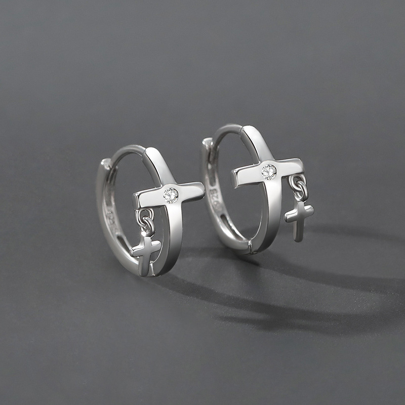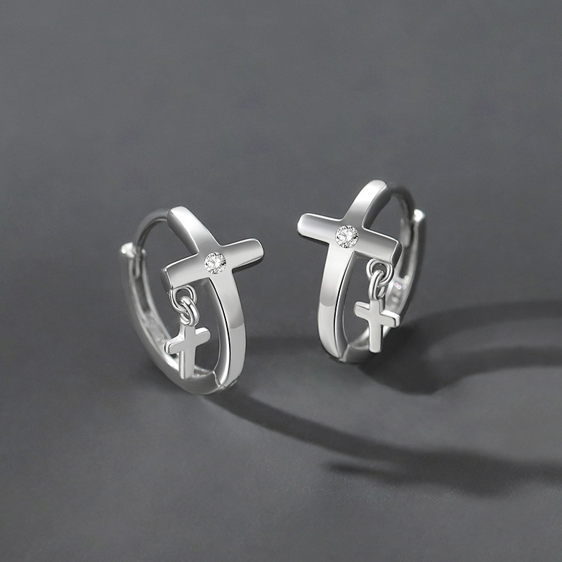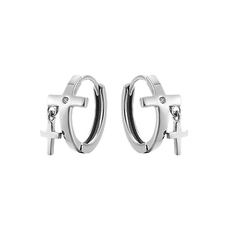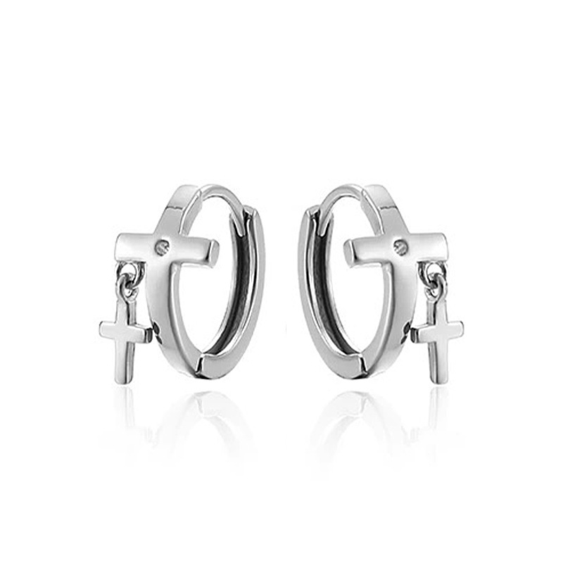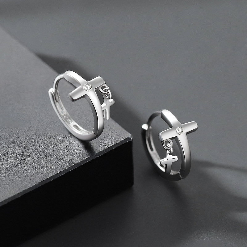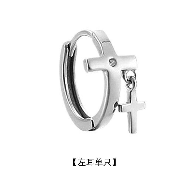 | 复古幸运四叶草耳环男款潮个性嘻哈风耳饰时尚仿泰银十字架耳扣 |