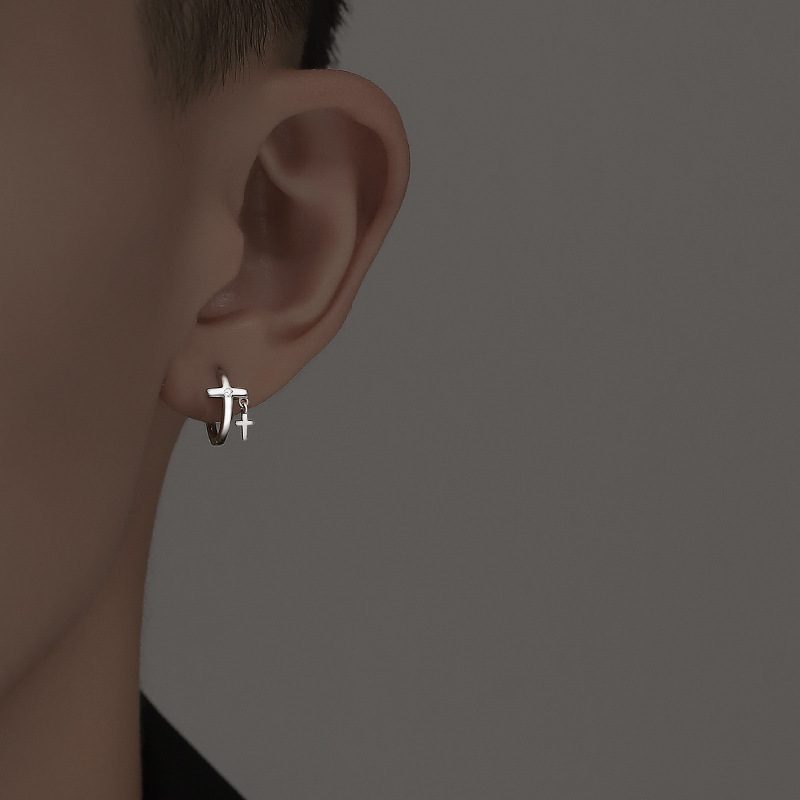 | 男士耳钉北极星磁吸耳夹潮流个性嘻哈风单只耳饰十字架无耳洞耳环 |