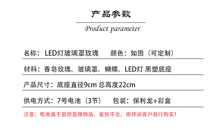 跨境新品LED灯香皂花发光玫瑰玻璃罩礼盒情人节送女朋友圣诞礼物 English | 投诉