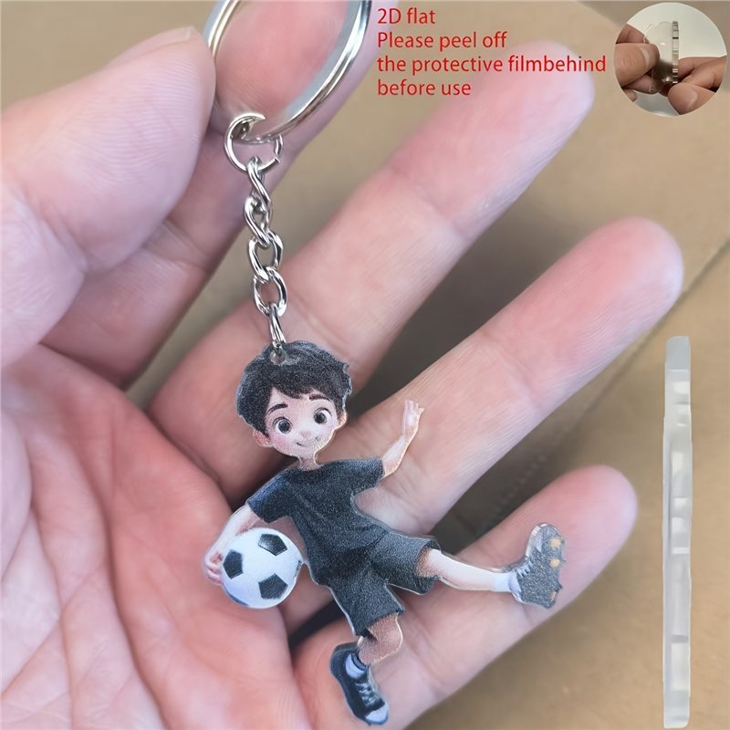 新款足球男孩吊坠亚克力跨境平面车内后视镜装饰品钥匙扣挂坠