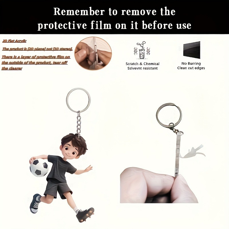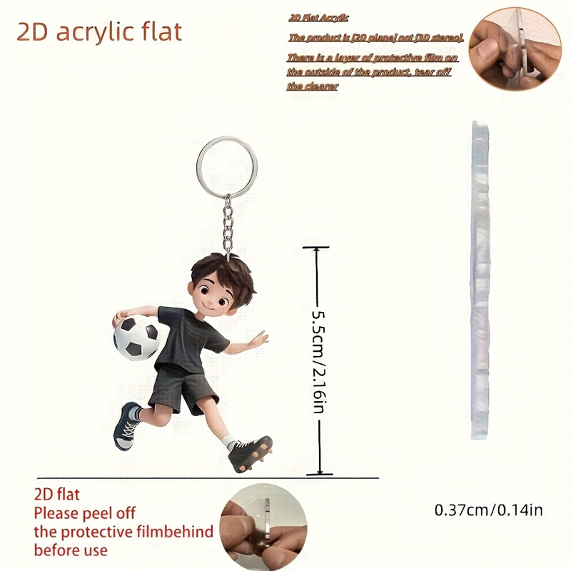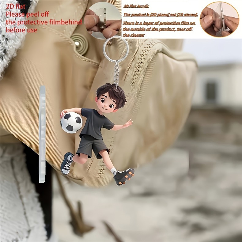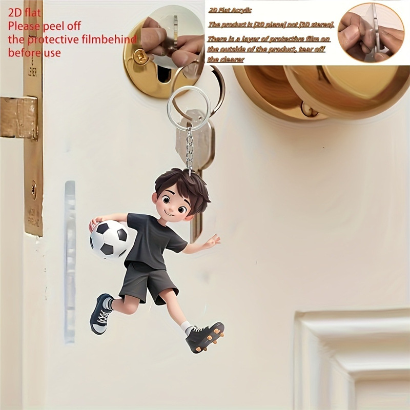 新款足球男孩吊坠亚克力跨境平面车内后视镜装饰品钥匙扣挂坠 投诉